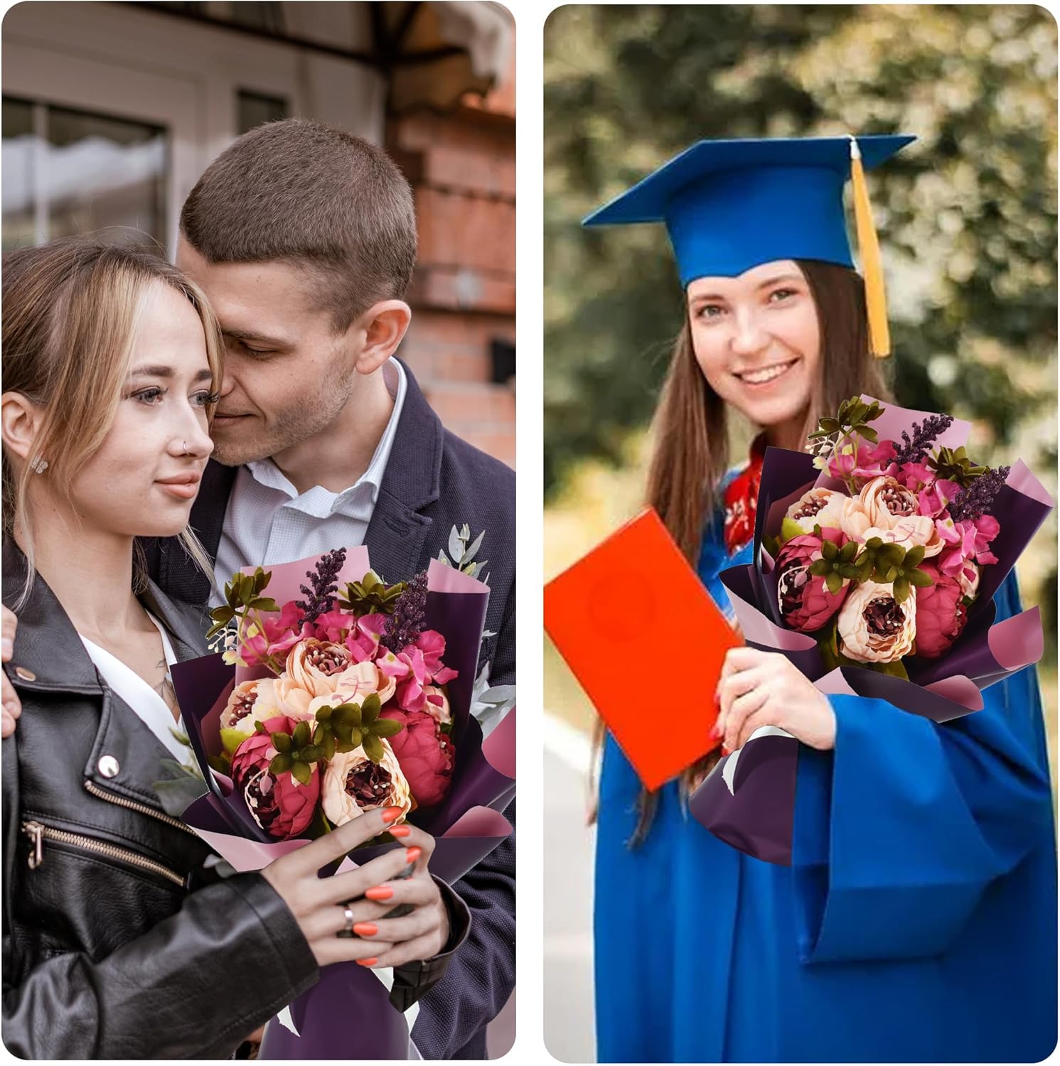 - 【Quality】The double side color floral wrapping paper is Made of high-quality safe durable and waterproof plastic,so do not worries about water when you wrap for flowers,exquisite dyeing and printing, flower paper does not fade.