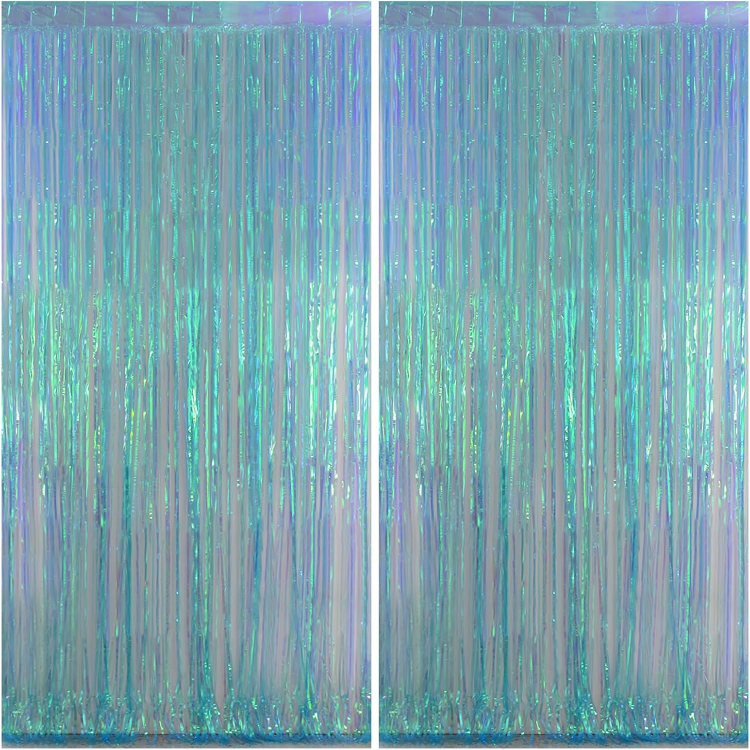 - Pack of 2: Includes 2 packs foil fringe curtains, enough to decorate your party backdrop and save your money. Each curtain is 3.2ft x 8ft. You can use 2 packs of the curtains side by side to make the backdrop larger, or overlap 2 pack of curtains to achieve a fuller and better look.