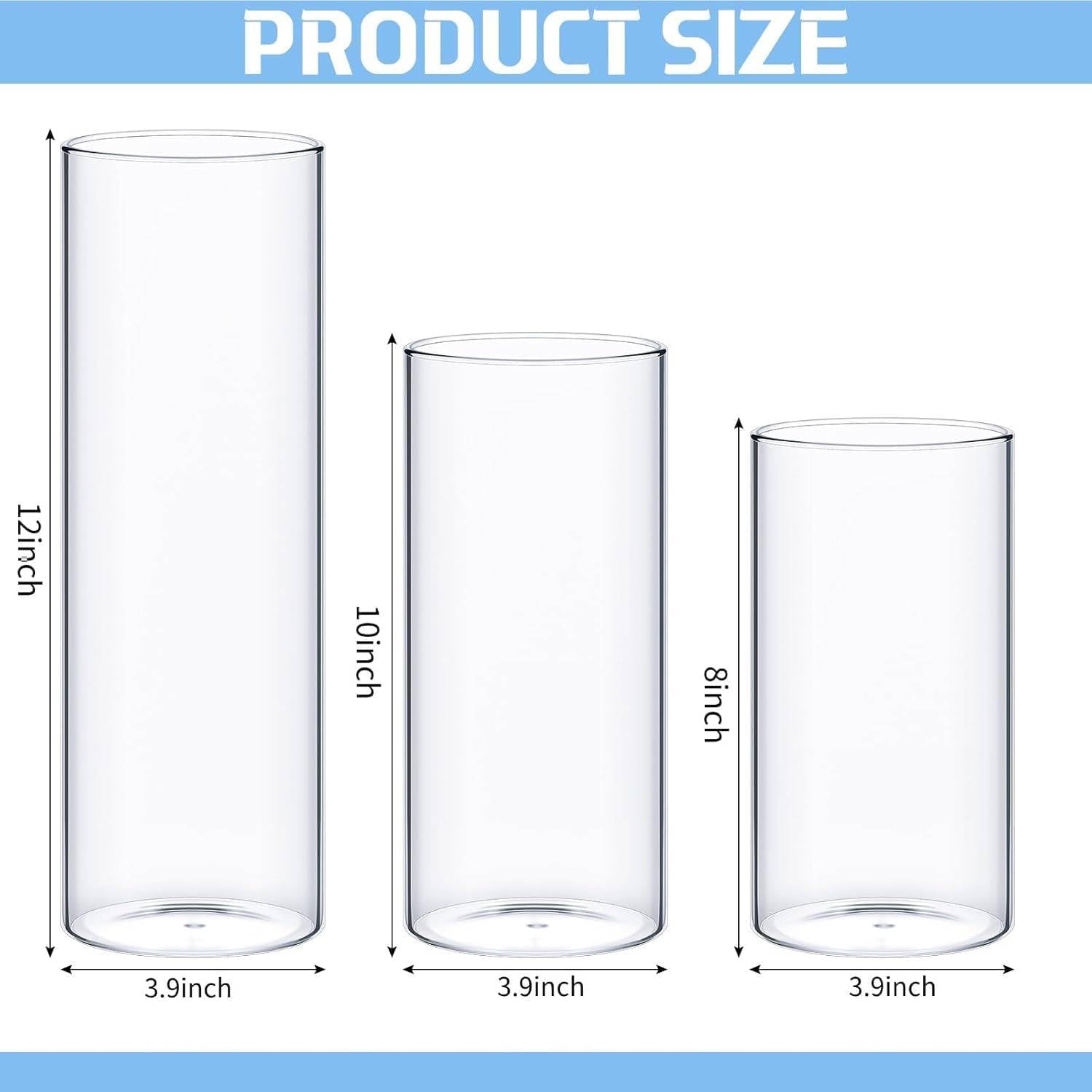 - Assorted Size: per glass cylinder vase for centerpieces measures 3.9 inch in diameter, and there are 3 kinds of height available, 8 inch, 10 inch and 12 inch, to meet your decoration needs for various occasions