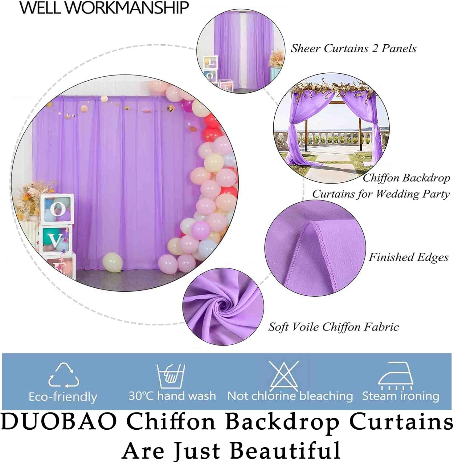 - ★ SHEER CHIFFON CURTAINS :Includes 2 Panels Width 5ft (total width 10ft for 2 panels) chiffon backdrop curtain lavender color--Different electronic devices seeing the image colors will different . Please refer to the actual product for specific color.