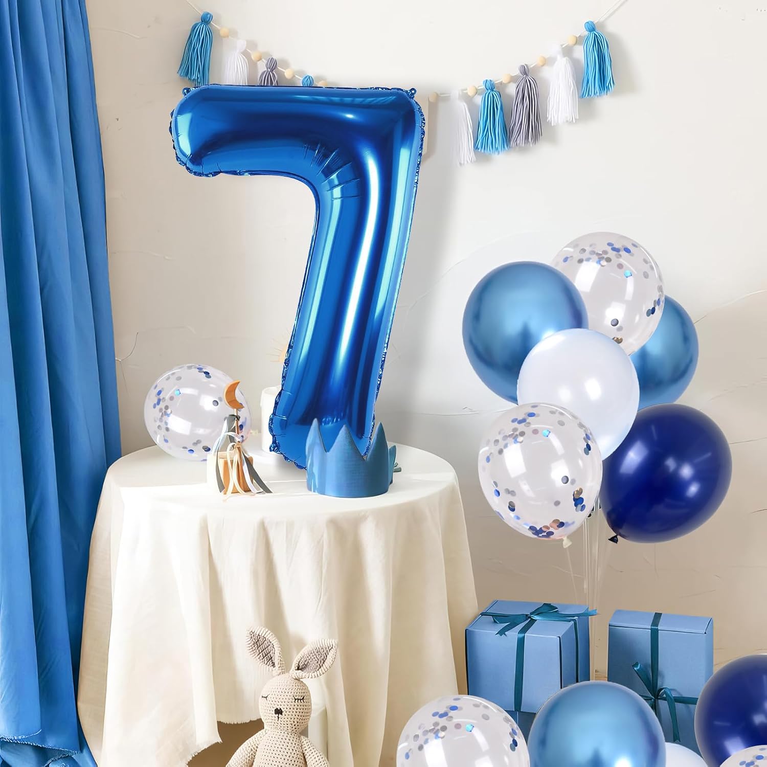 - 💓 Dark Blue Number 7 Balloon: Our package included 40 inch foil number 7 balloon(1pcs), 12 inch metallic blue balloon(4pcs), blue silver confetti balloon(4pcs), pastel blue balloon(4pcs), Light Navy Blue Balloon(2pcs), 1pcs straw and 1 roll ribbon. Simply inflate the balloon using the straw, and you're ready to party! Navy blue number foil balloons are the best for girls or boys birthday party decoration.