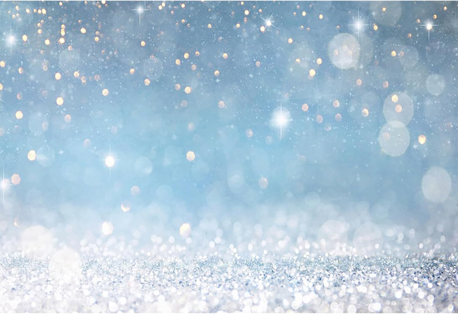10x8ft Blue Bokeh (Not Glitter) Backdrops Birthday Party Abstract Golden Sparkling Spots Photography Background Baby Shower Wedding Prom Graduation Party Bokeh Decor Banner Photoshoot Props