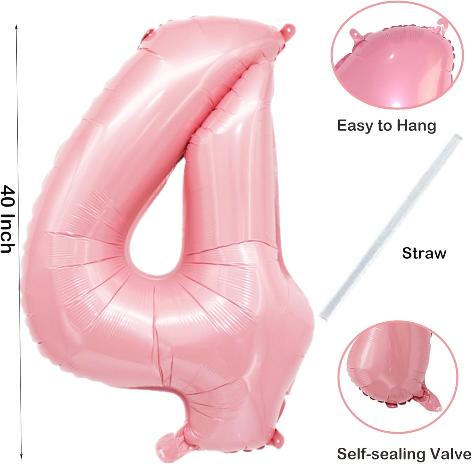 - 【Reusable 】: Light pink number 4 balloon can be reusable repeatedly with self-sealing valve, convenient to inflate and deflate by an air. After party ending, the number balloons will easy to deflate and store for next time use. Do not overfill the balloon to avoid sunburn, overheating, sharp objects and excessive friction.