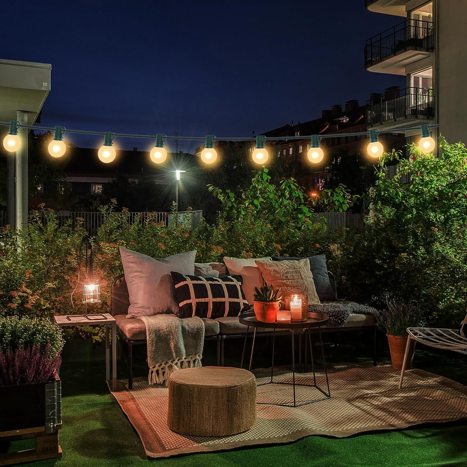 - Decorative Christmas light string: This G40 light string can be installed on the porch, patio, garden, backyard, and emits a warm white light that makes you feel very happy when gathering with your family and friends. Christmas Outdoor string lights are the perfect decoration for Christmas, Halloween, Thanksgiving, weddings, birthdays and other holiday parties, adding a romantic and warm atmosphere to your venue