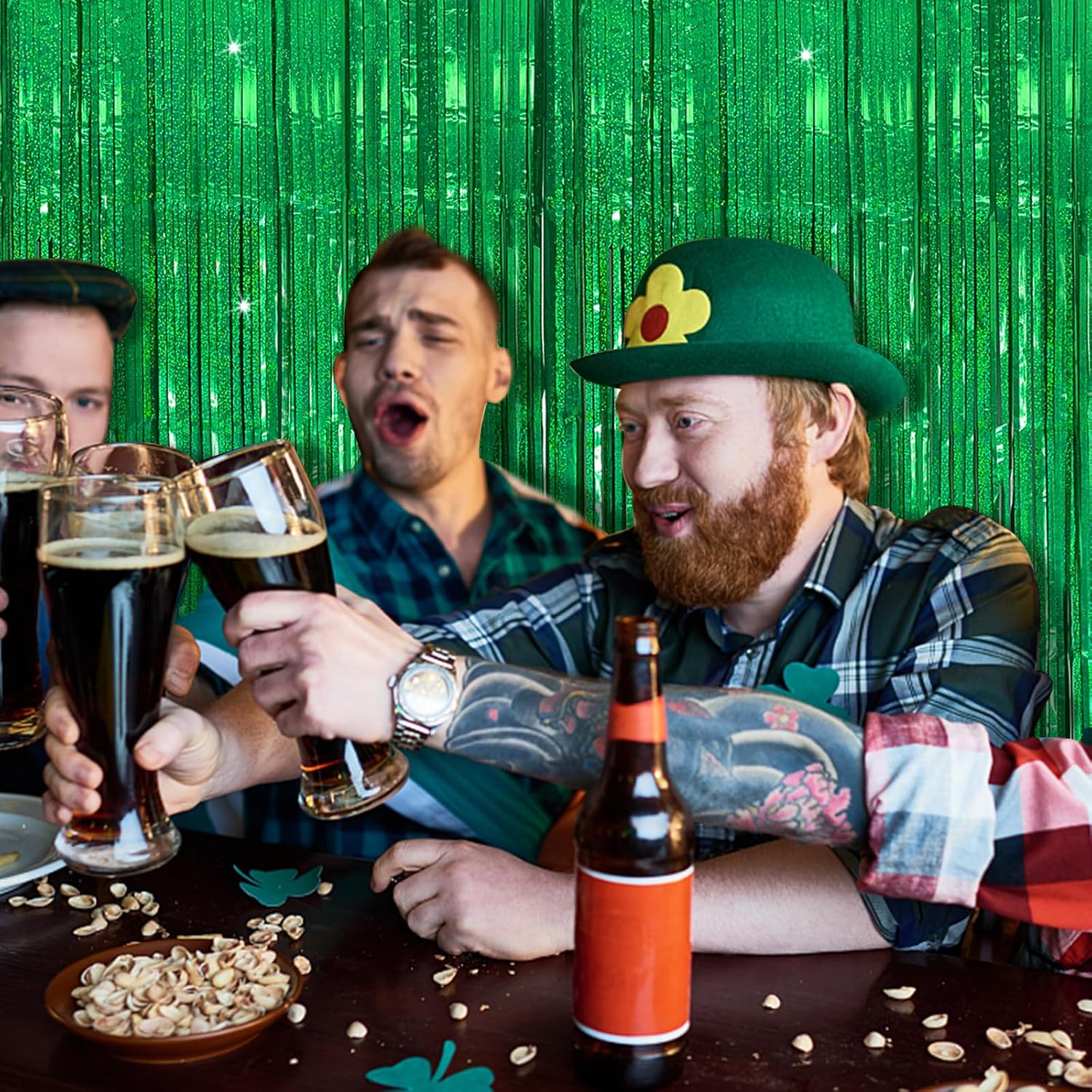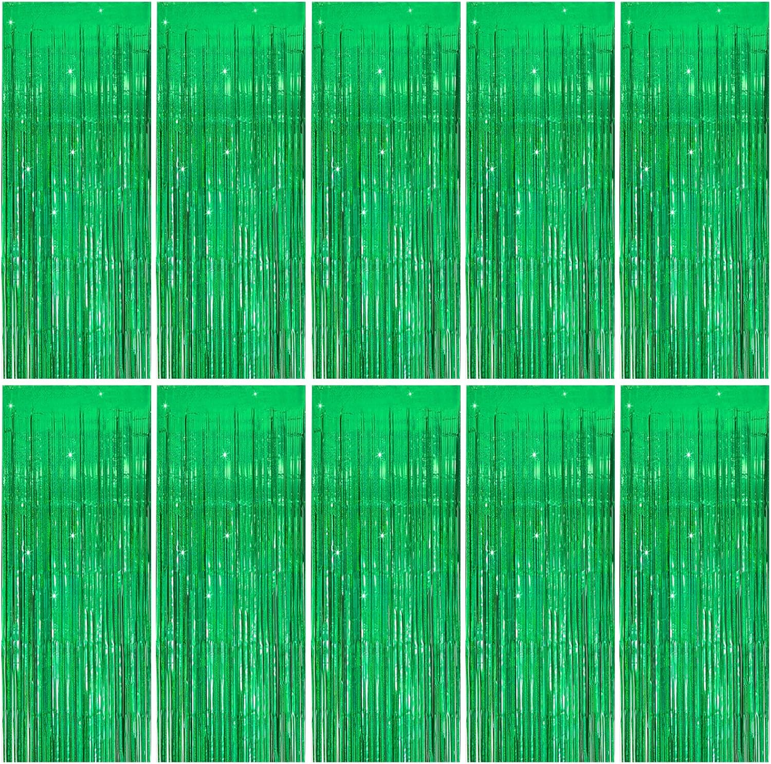 Tinsel Curtain Party Backdrop Green Birthday Decorations 10 Packs Glitter Foil Fringe Curtain Party Decor Streamers Photo Booth for Birthday Christmas Wedding Halloween Graduation Decorations