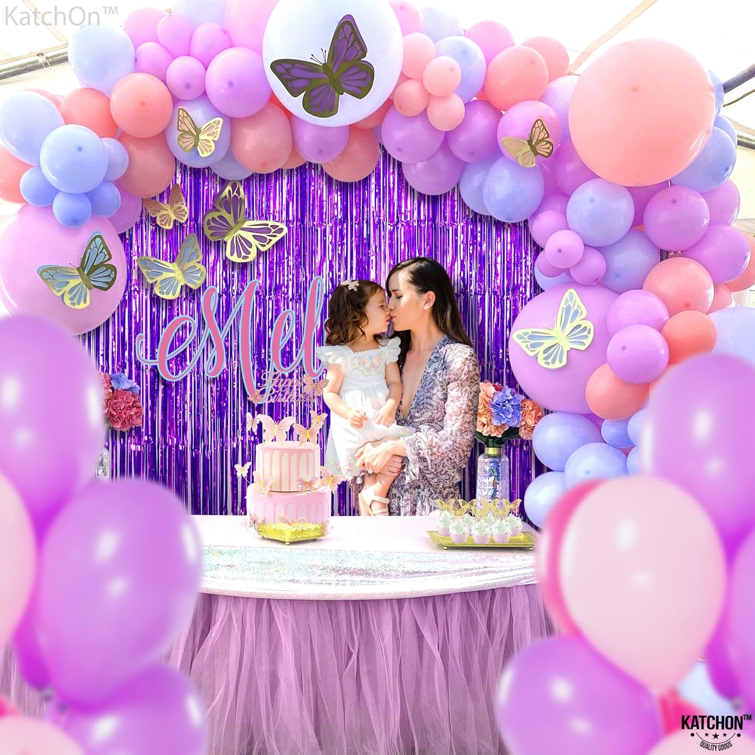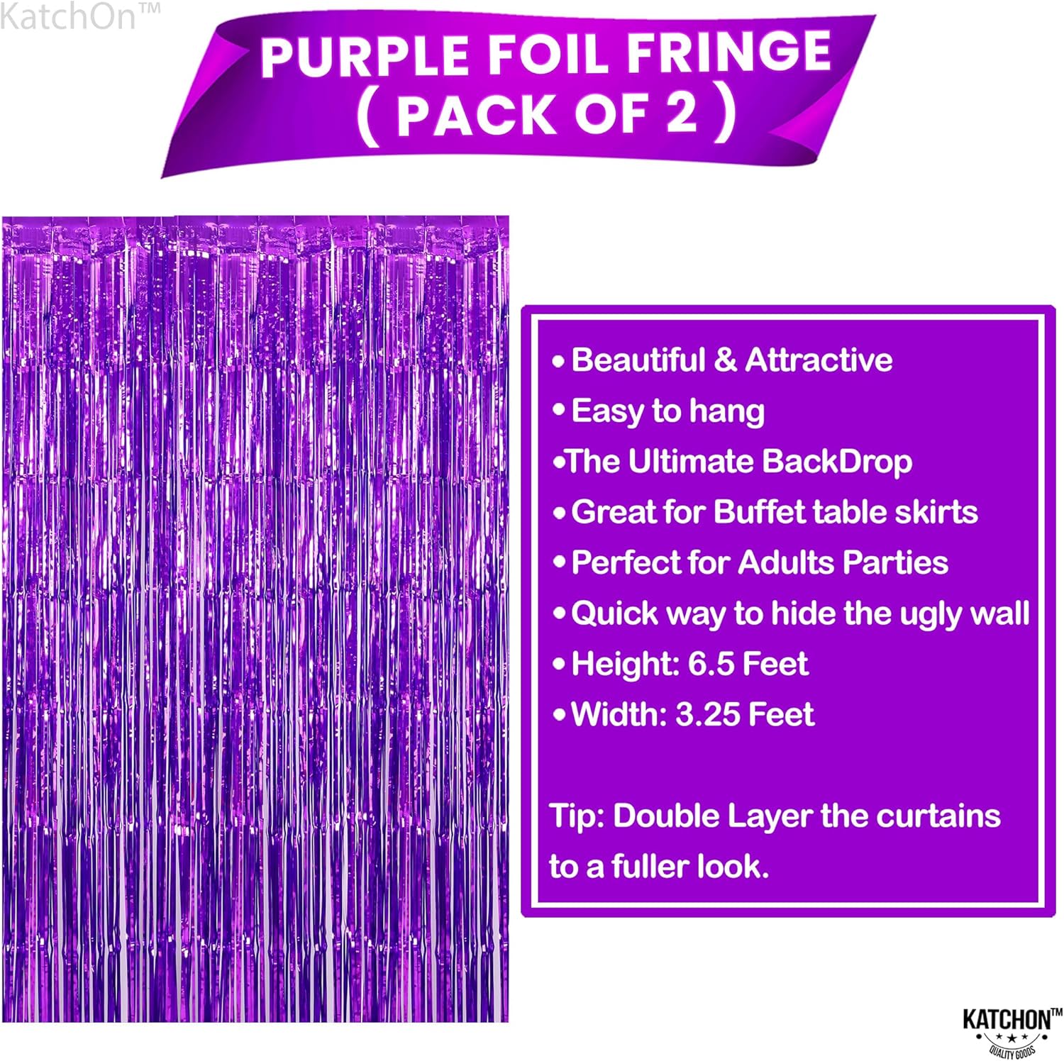 KatchOn, Metallic Purple Foil Fringe Curtain - Pack of 2 | Streamer Backdrops for Purple Birthday Decorations | Bachelorette, New Year, Halloween Party Decorations | Unicorn, Mermaid Party Decoration