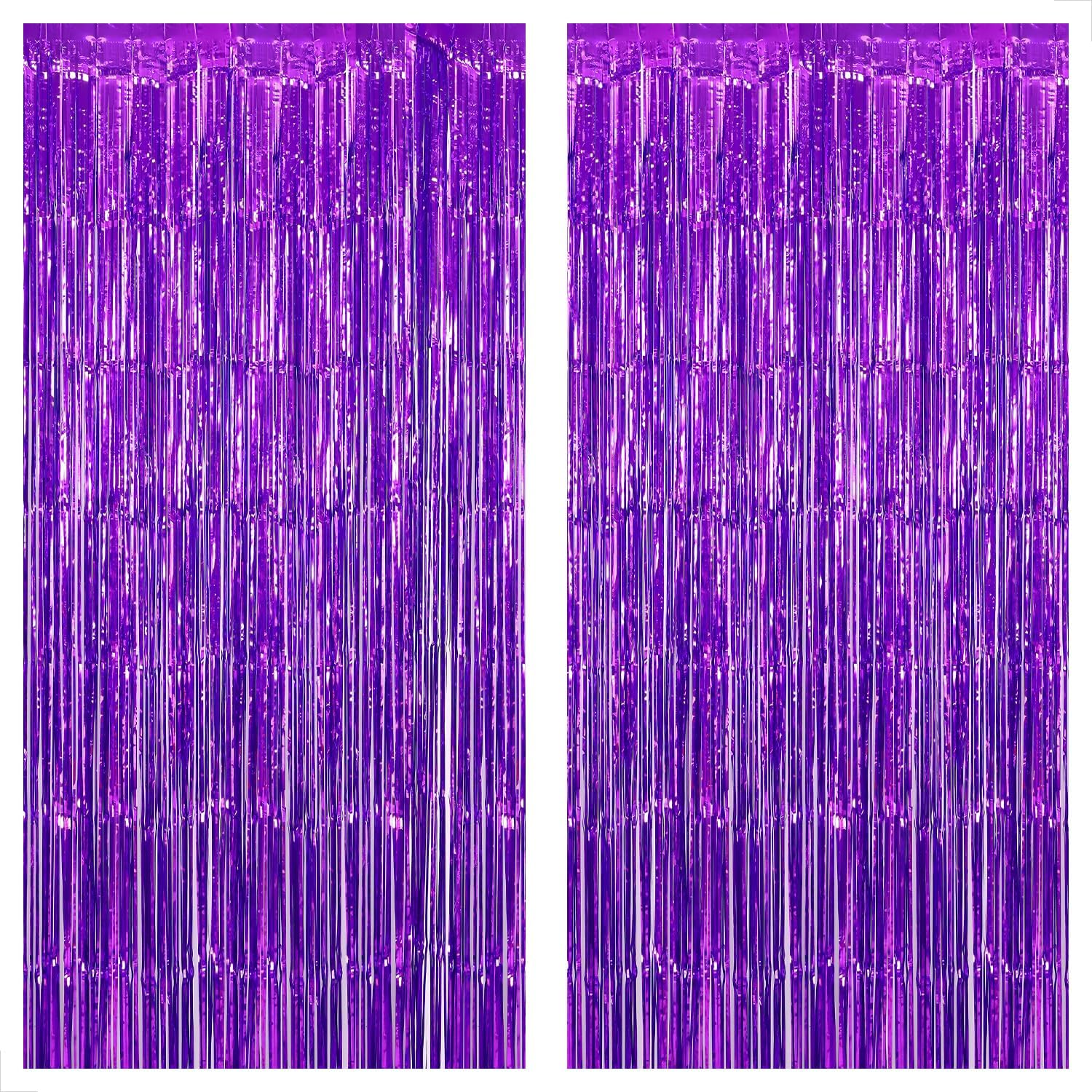 - EASY TO SETUP | PURPLE STREAMERS: These purple fringe curtain backdrop for streamers party decorations come with double-sided adhesive tape, easy to setup, just tear off the back of adhesive tape, then paste this purple foil curtains on the top of wall oranywhere you like. Ideal for purple backdrop for mermaid birthday decorations, masquerade party decorations, purple party decorations, purple birthday decorations, hanging streamers purple, purple blue backdrop, purple tinsel backdrop, purple streamers party decorations, purple string backdrop, streamers purple, neon purple backdrop, halloween party decorations, halloween decorations, bridal shower decorations, halloween backdrop.