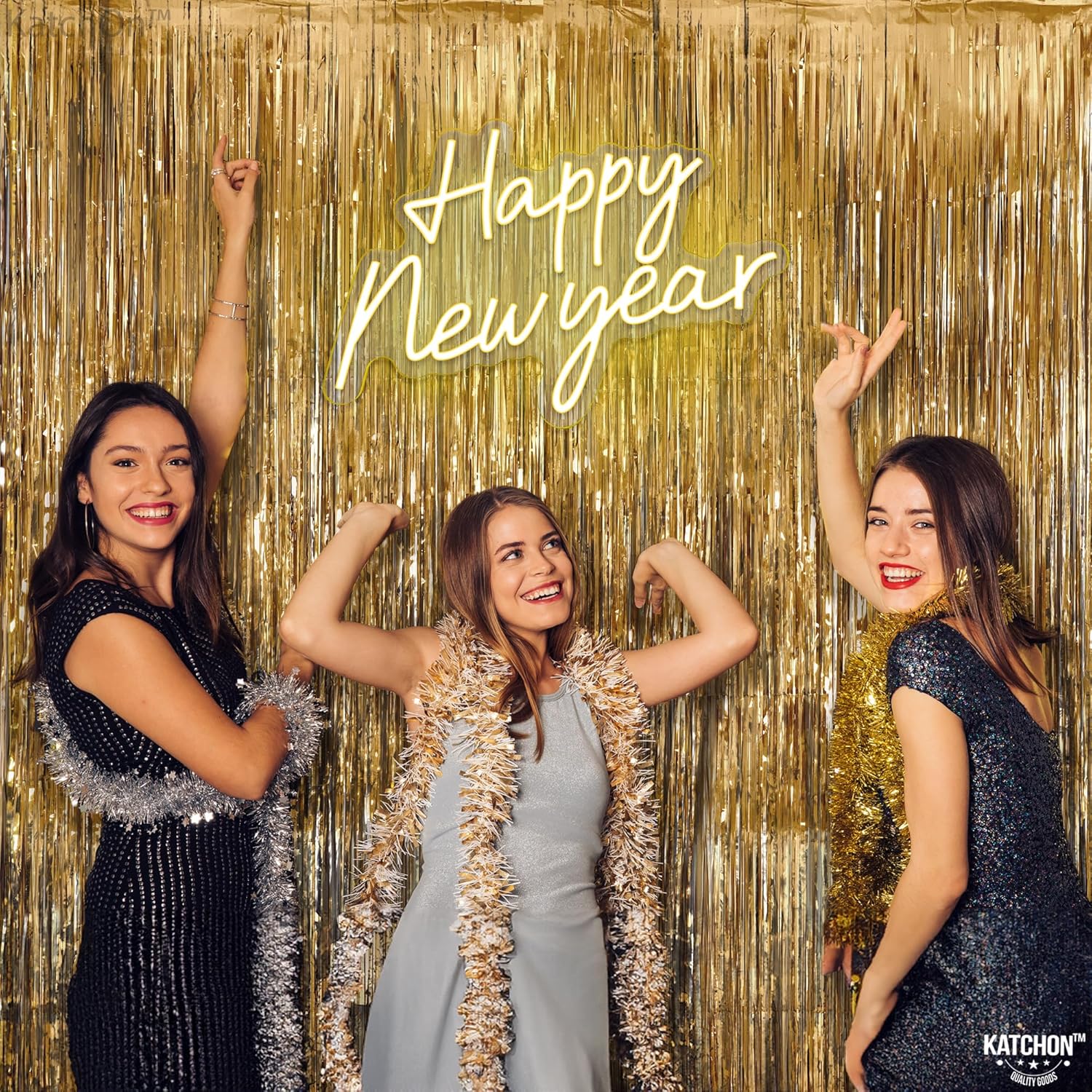 - EASY TO ASSEMBLE | STRONG ADHESIVE: Hanging this classy curtain takes seconds—sticky adhesive strips secure the full fringe wall with no hassle. It doubles as top-tier new years eve party supplies 2026 and offers an irresistible happy new year backdrop, golden birthday decorations for women, metalic gold foil fringe curtain for all your celebrations. Coordinate with new years eve backdrop 2026 props, champagne gold tinsel or introduce a festive new years backdrop to ring in a happy new year 2026 moment that captivates every guest.