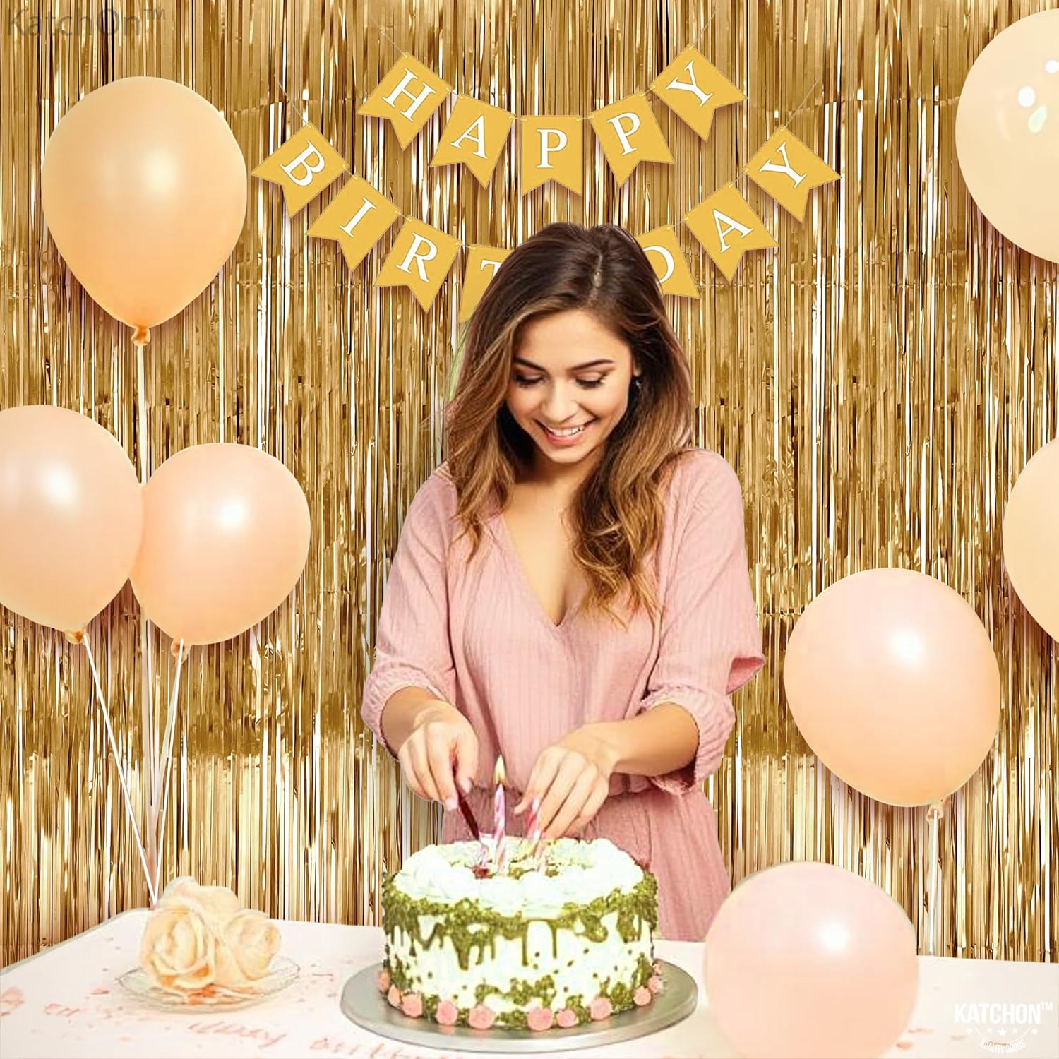 Katchon, Champagne Gold Backdrop Curtain - Pack of 2 | Gold Streamers for Birthday, Anniversary, Bridal Shower, Bachelorette Party Decor | Shimmer Curtains for Thanksgiving, Happy New Year Decorations