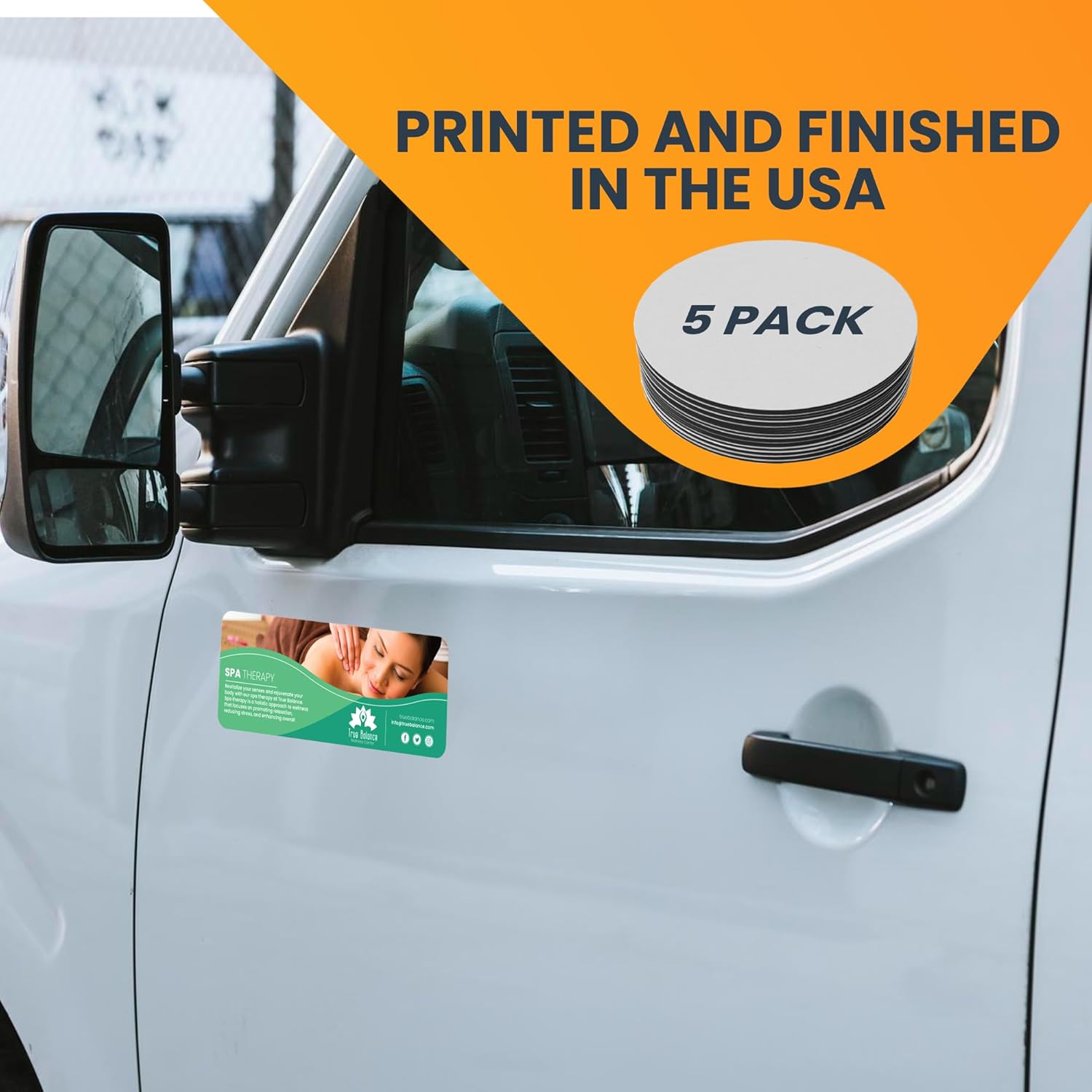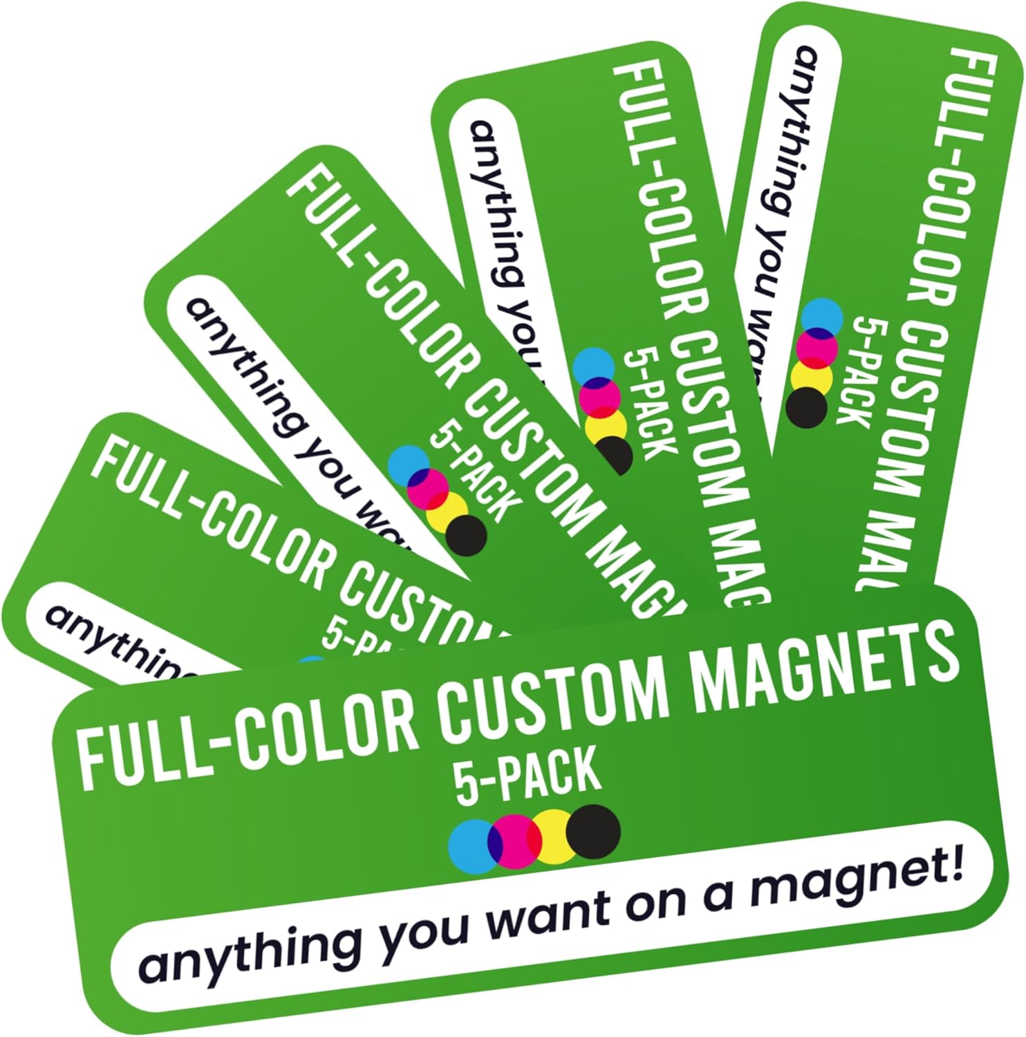Magnet Me Up Custom 8x3 Inch Rectangle Magnet, 5 Pack, Customizable for Businesses, Personal Use, Choose Your Text, Upload Image, Magnetic Vinyl for Car and Any Magnetic Surface, Crafted in USA