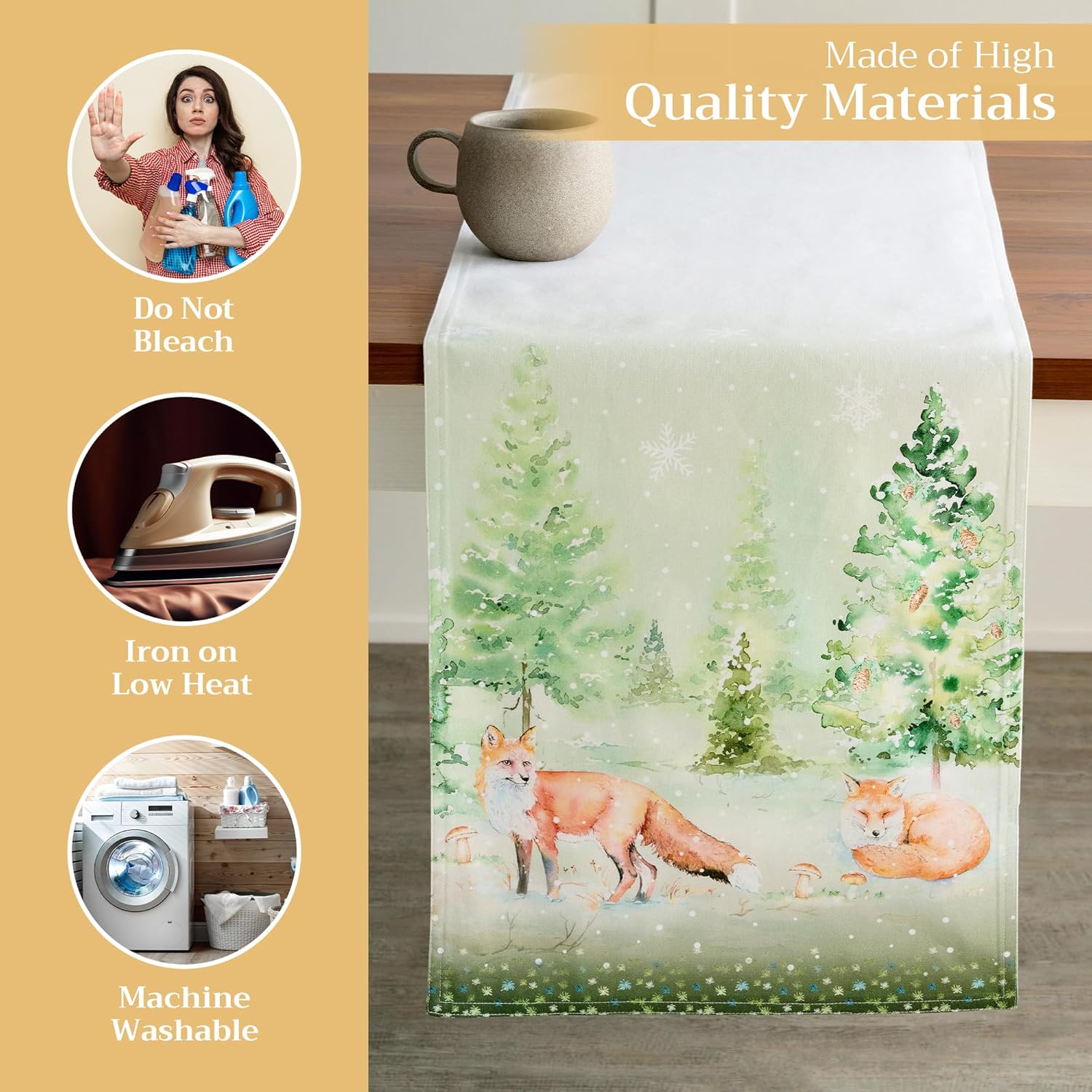 Maison d' Hermine Table Runner 100% Cotton Single Layer Table Runners 72 inches Long for Thanksgiving Christmas Decorations Home Kitchen Dining Party Wedding (Winter Mornings, 14.5" x 72")