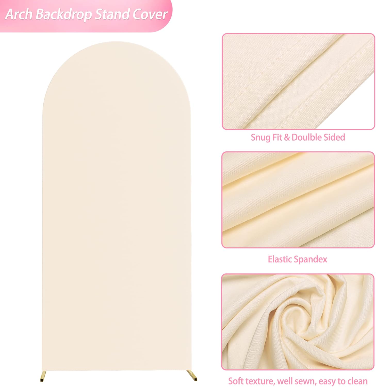 - 【Arch Backdrop Stand and Covers Package】Package contains 1pcs wedding arch stand and 1pcs arch cover. Size: 6x2.6ft(HxW). Material: metal arch backdrop stand and spandex arch cover. Color: Beige arch cover and gold wedding arch stand. Decorate your party with our gold arch stand and arch covers to create an epic decor for your celebration.