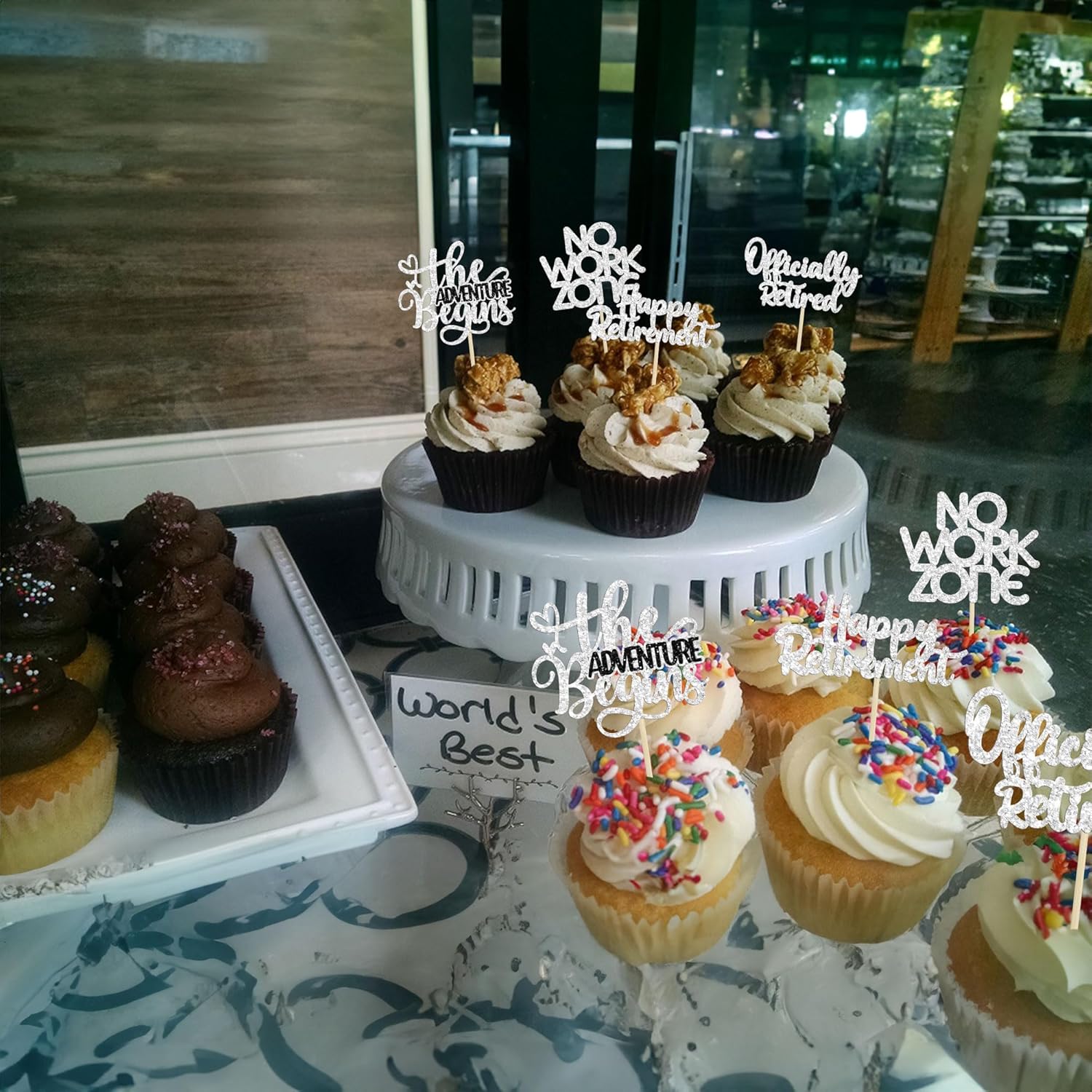 - 【NO Required】: 24Pcs Happy Retirement Cupcake Toppers can put in the cake directly! These Happy Retirement Cupcake Toppers saves your time and super easy to use. You can easily dress up your birthday theme cakes, yes! but don't stop there, put them into desserts, cookies, fruit pieces, appetizers, muffins and so much more!