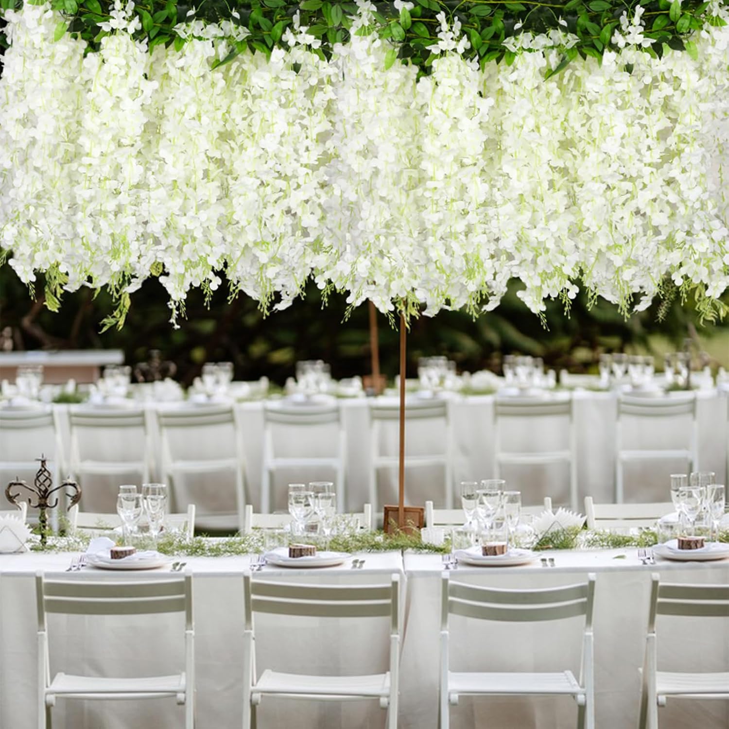 Wisteria Artificial Flowers Garland,10Pcs Total 60ft Silk Fake White Wisteria Flowers Hanging for Home Garden Wedding Arch Party Indoor Outdoor Decor