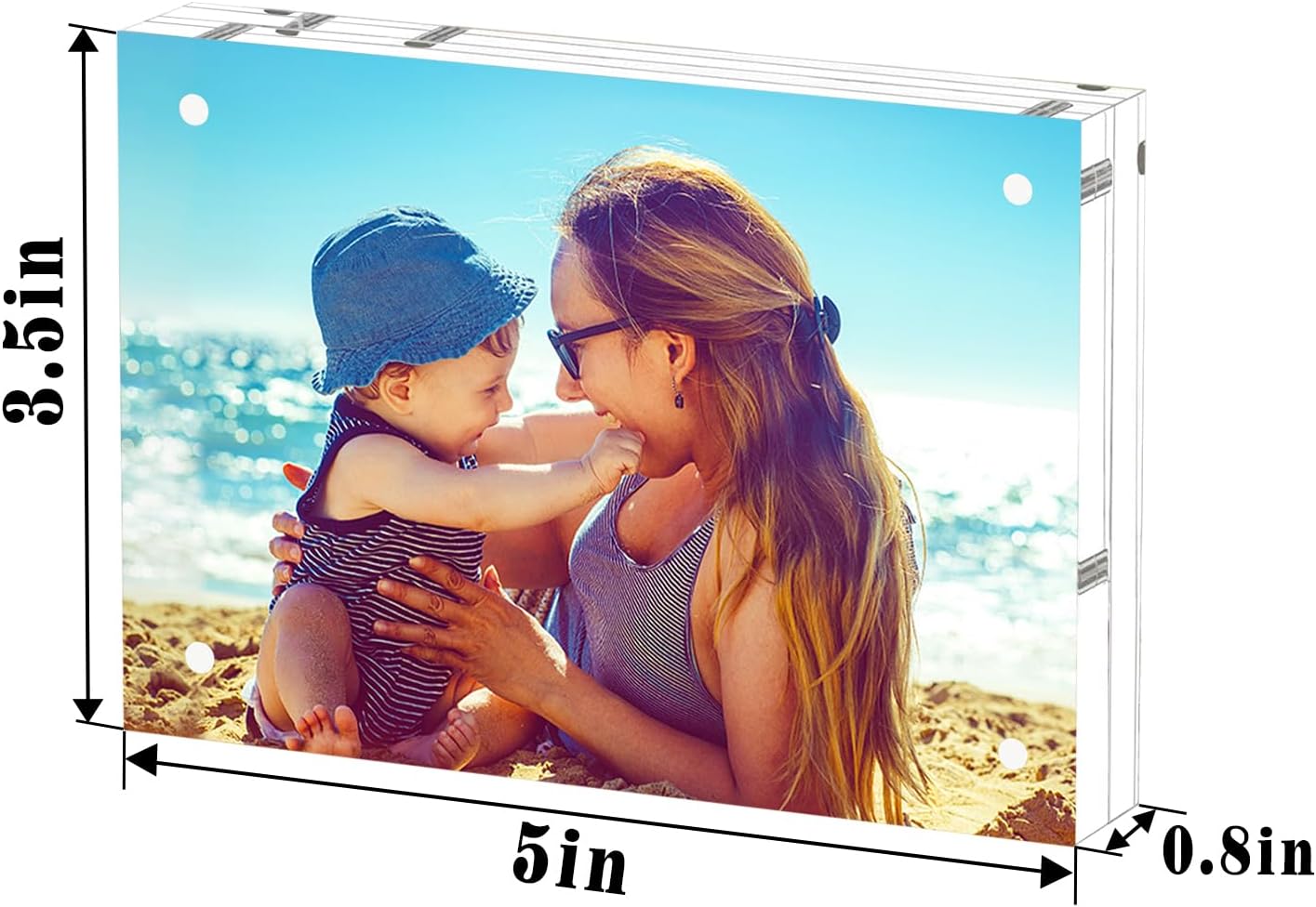 HELPLEX Acrylic Frame, 3 Pack 3.5x5 Acrylic Picture Frames, 20mm Thicker Frameless Clear Frame Double Sided Magnetic Frame, Free Standing Desktop Display Stand Acrylic Frames, 3.5x5(3 PACK)