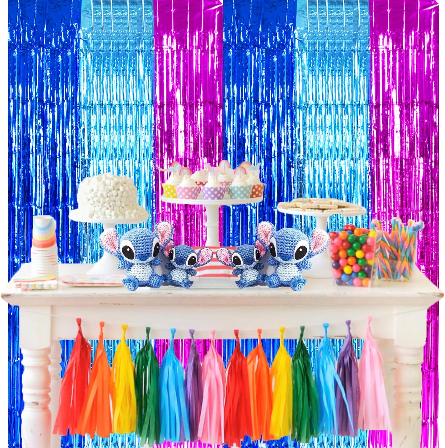 - PACKAGE CONTENTS: 2 x foil curtains: Big size (wide x drop):3.3 x 6.6 feet,6.6ft x 6.6ft in total. Brightly colored quality party decoration photography curtains will surely make your party more fun.