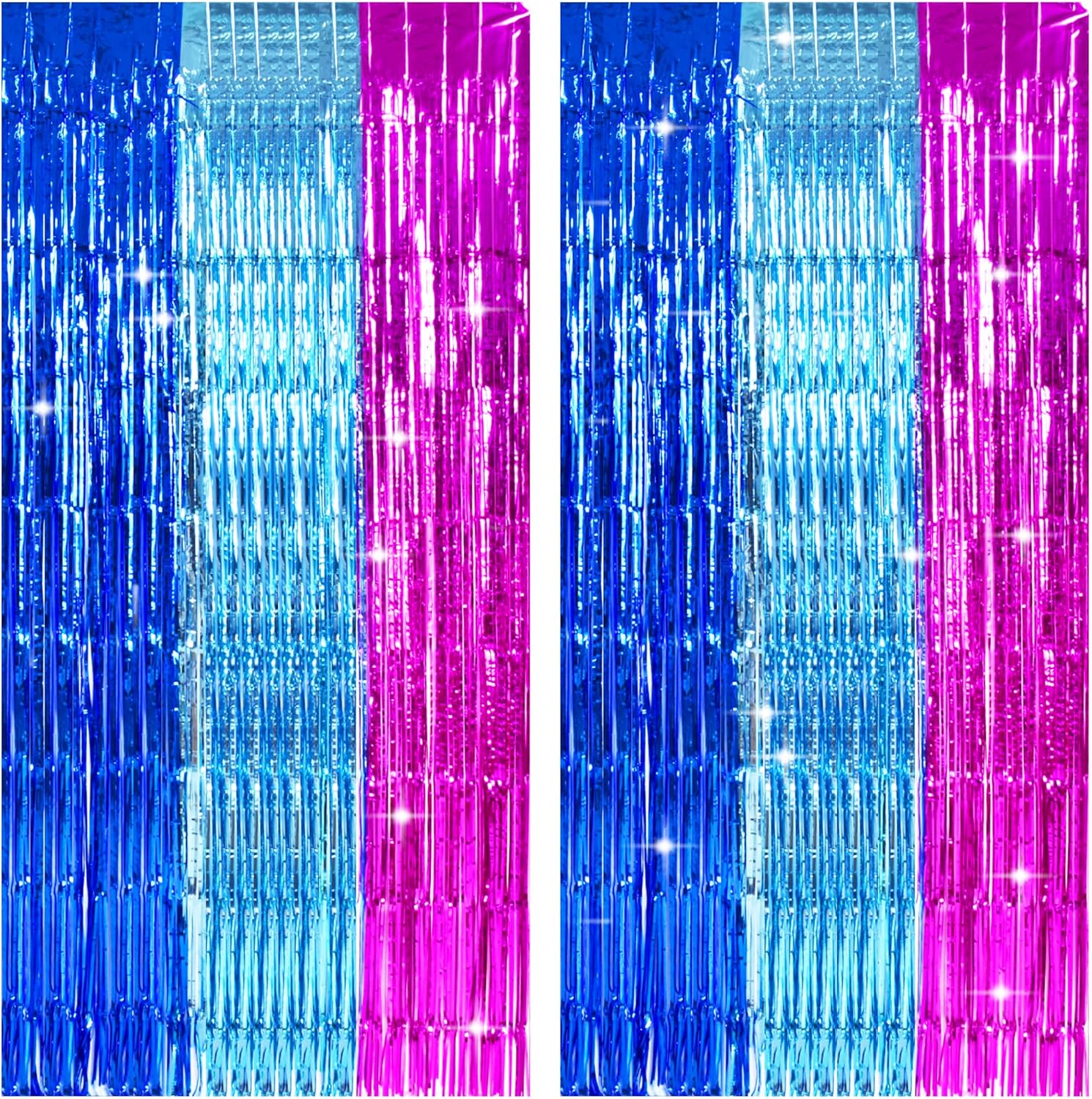 TONIFUL Blue Pink Door Streamers,Blue and Pink Photo Booth Backdrop Metallic Streamers Foil Fringe Curtain for Birthday,New Year,Graduation,Grad,Baby Shower Party Streamers Decoration