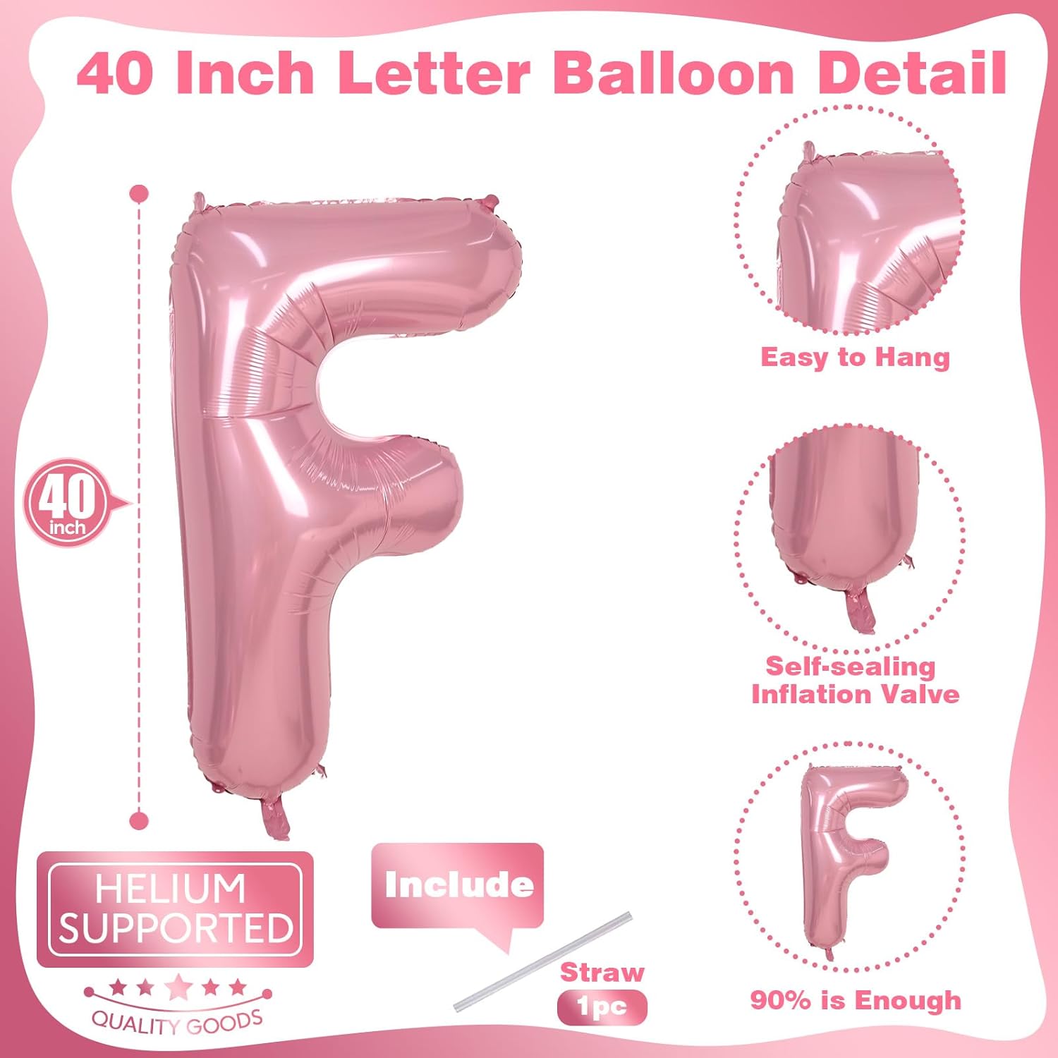 - 🎈 What You Will Get: Our giant letter balloon package includes 1pc 40 inch "F" letter foil pastel pink balloon and 1pc convenient straw for inflate. You can choose any big alphabet balloon to combine and customize the word you want to form. For example: OH BABY, BRIDE, GIRL, BIG SIS. Make your party more unique and meaningful.