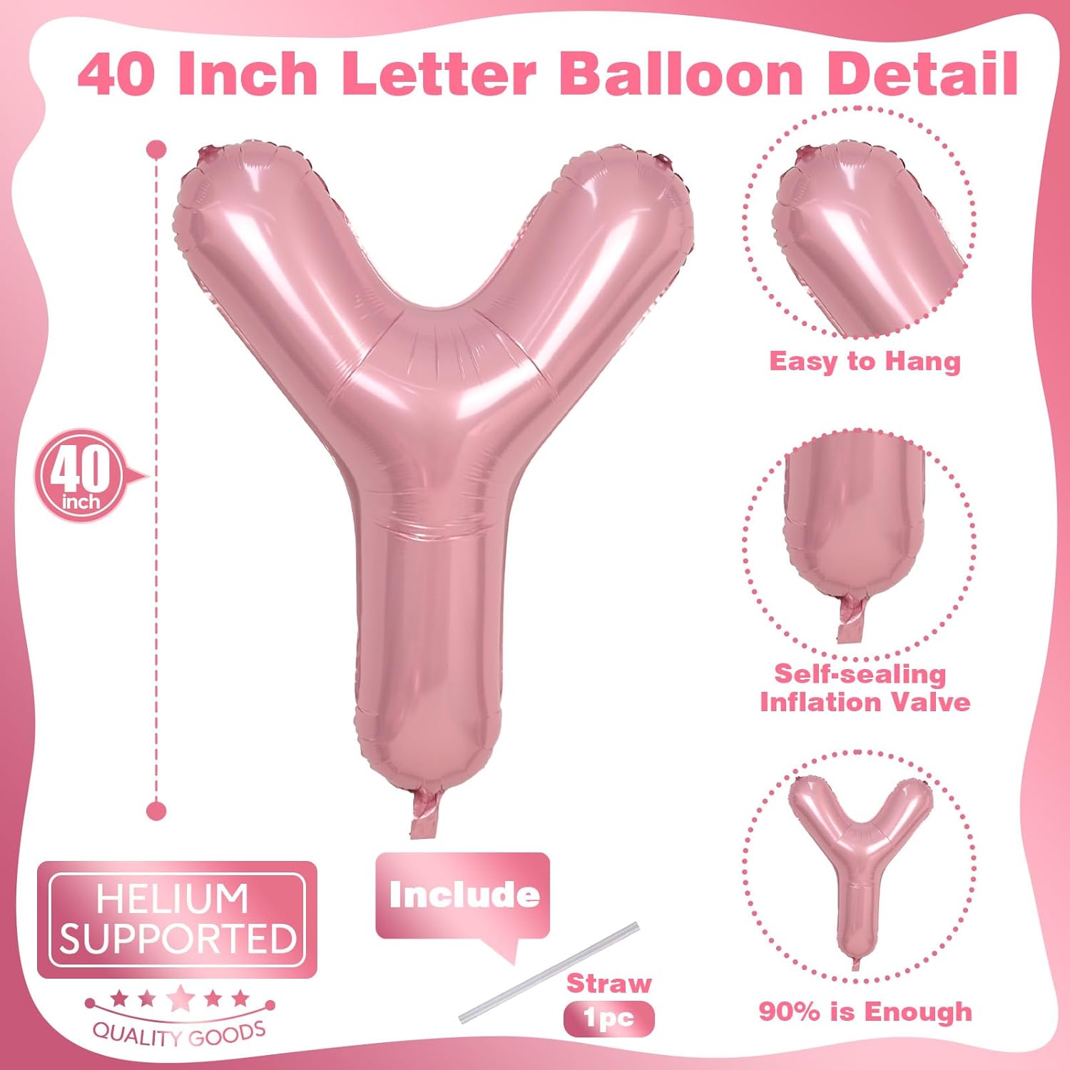 - 🎈 What You Will Get: Our giant letter balloon package includes 1pc 40 inch "Y" letter foil pastel pink balloon and 1pc convenient straw for inflate. You can choose any big alphabet balloon to combine and customize the word you want to form. For example: OH BABY, BRIDE, GIRL, BIG SIS. Make your party more unique and meaningful.