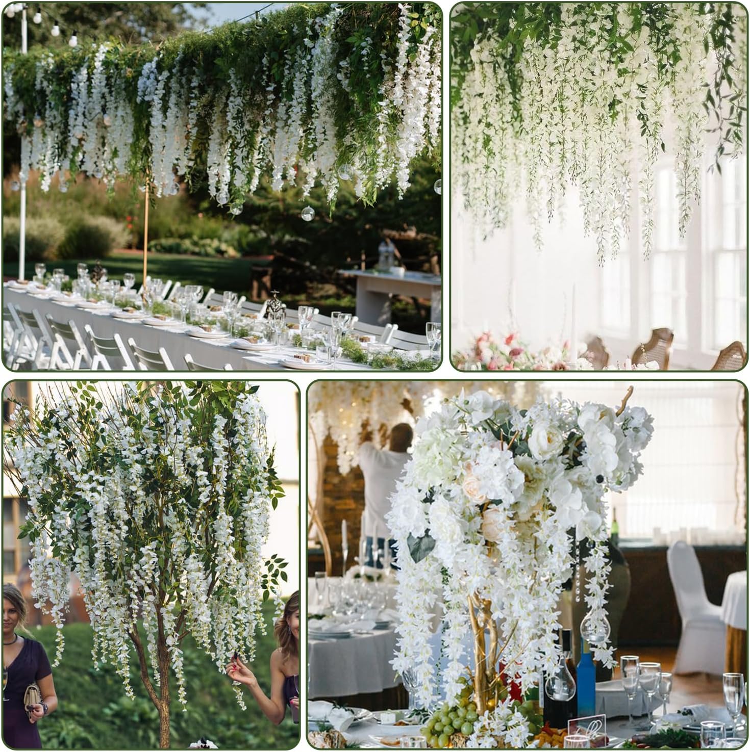 - Include Content:This package includes 150 white artificial wisteria vines, measuring 3.6 feet in length. Each vine has three branches, measuring 23.6 inches in length. There are 29 white wisteria flowers on each branch