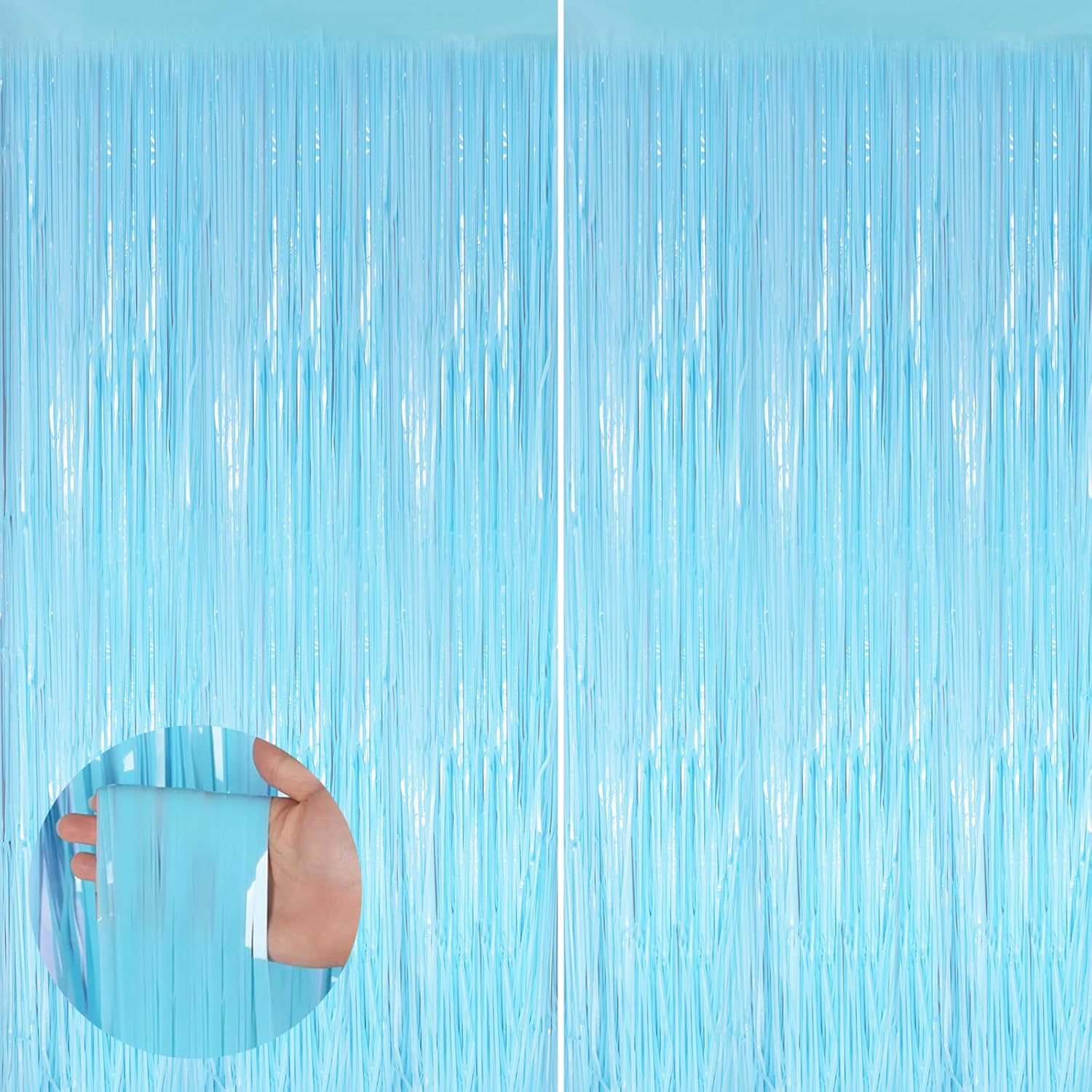 Macaron Blue Fringe Curtain Party Streamers 2Pack 3.3 x 8.3 Ft Foil Fringe Backdrop Curtains for Birthday Wedding Bridal Baby Shower Holiday Tinsel Streamers Blue Party Decorations Door Streamer