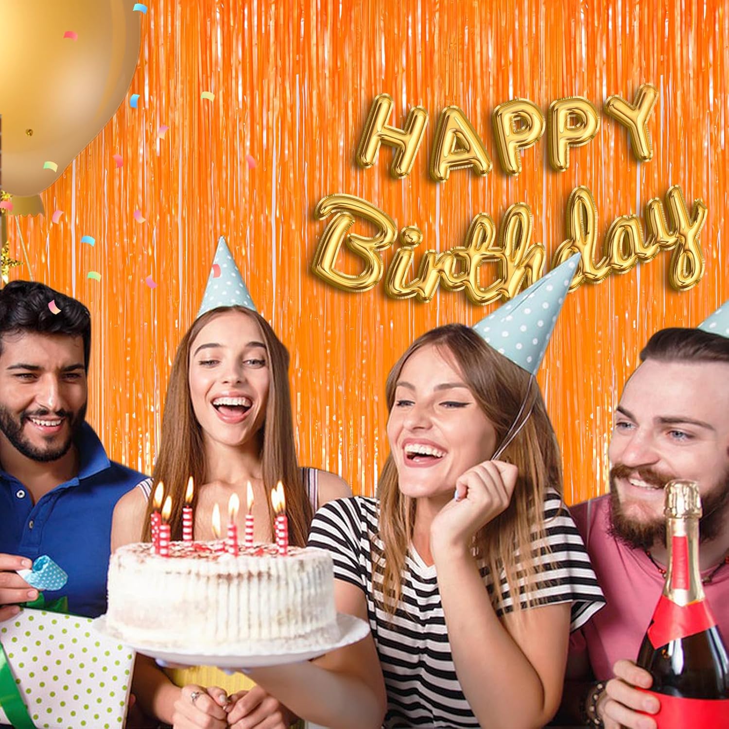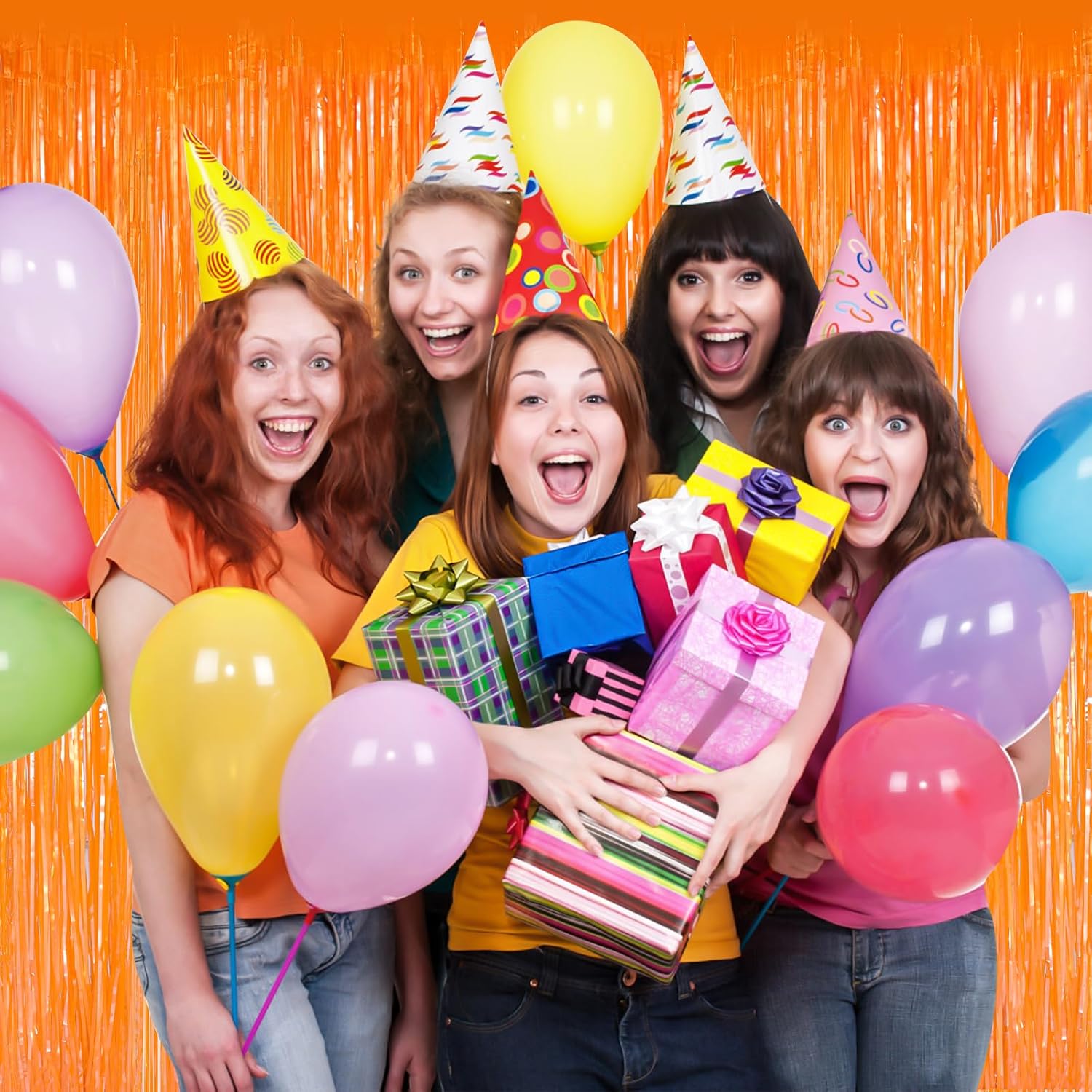 Macaron Orange Fringe Curtain Party Streamers 2Pack 3.3 x 8.3 Ft Foil Fringe Backdrop Curtains for Birthday Wedding Bridal Baby Shower Holiday Tinsel Streamers Orange Party Decorations Door Streamer