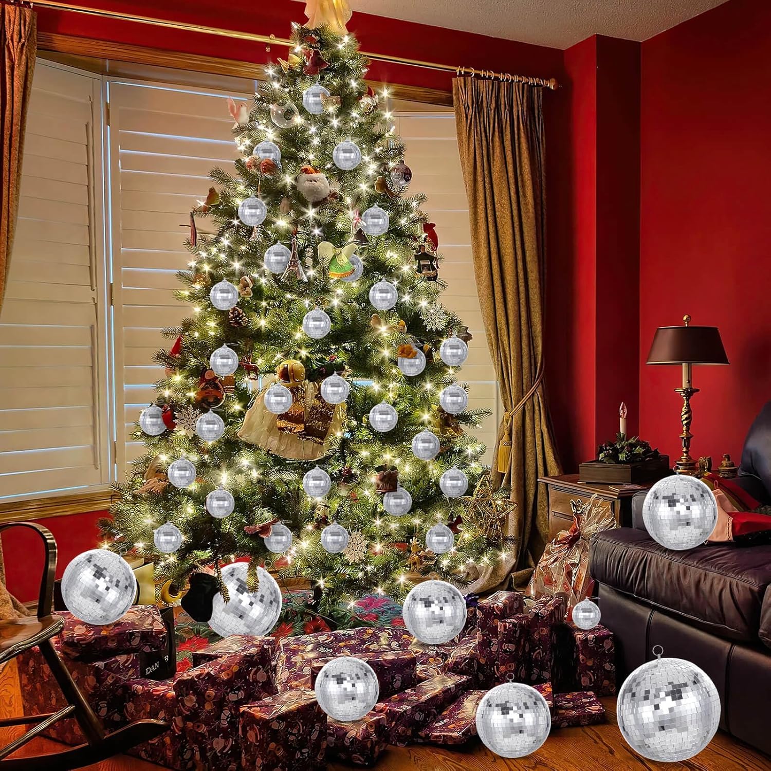 - Premium Quality Material: Made of high quality mirrored glass and Styrofoam, the compact glass mirror wraps around the entire sphere for a cool and bright reflective effect. The disco mirrored ball can reflect different colors of light on its surface. This creates a brilliant lighting effect. Immediately puts you in the atmosphere of the ball.
