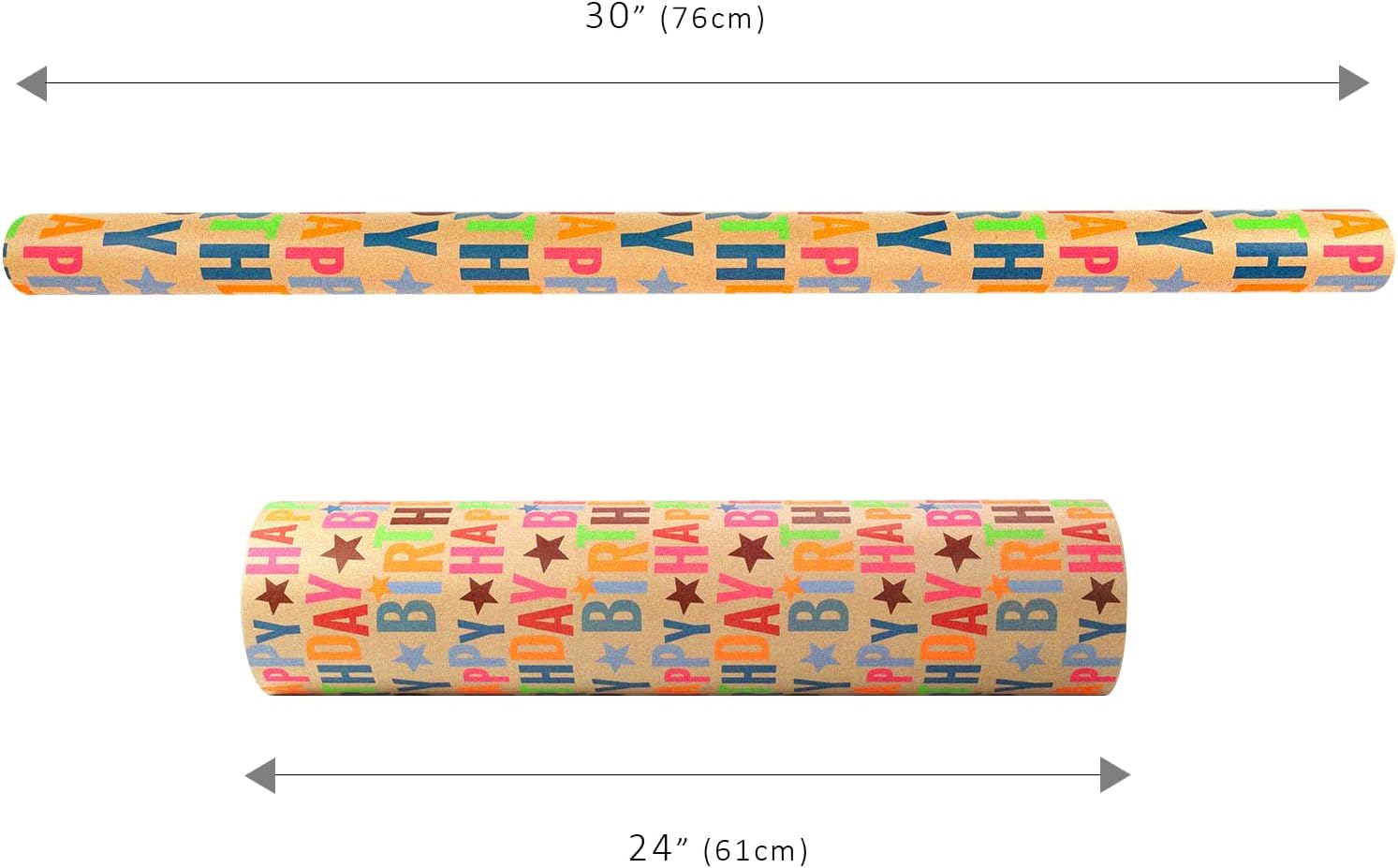 - Generous Size: Each roll contains 834 sq. ft. of birthday wrapping paper, providing ample coverage for all your gift-wrapping needs. The 24" x 417' dimensions make it suitable for various sizes of gifts