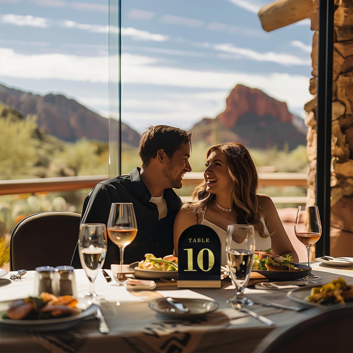 - Elevate Your Event- Our Black table numbers feature high-quality acrylic sheets and natural wood stands. Add a touch of elegance and sophistication to your event with these exquisite table numbers.