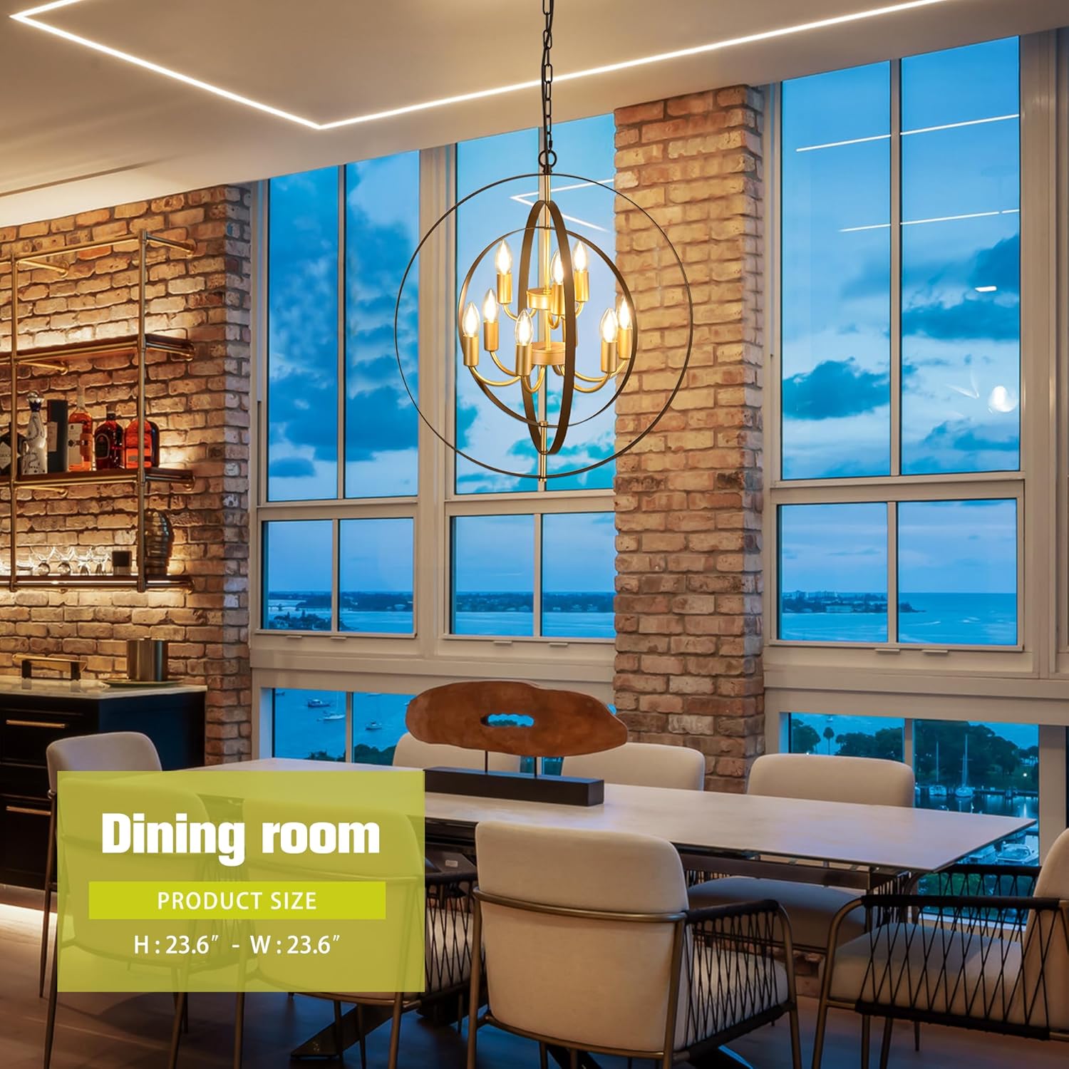 - 【Unique Design】Metal globe chandelier with adjustable round shade, by rotating the circle, you will get round chandeliers of different shapes. The vintage and black gold design will add a fashionable look, while complementing your rooms decor. suitable for living room, dining room, hallway, bedroom, kitchen island, etc.