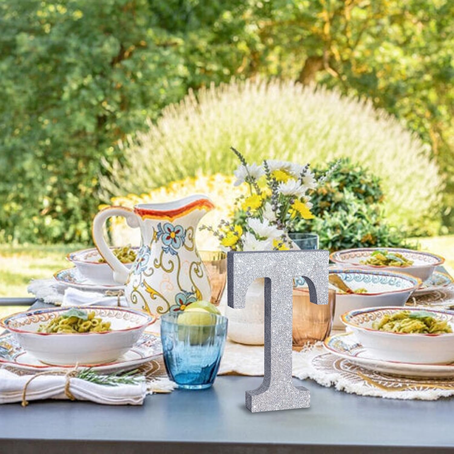 TONIFUL 8 Inch Silver Glitter Letter T Table Centerpiece A-Z Silver Birthday Party Decorations,Silver Alphabet T for Birthday,Chrismas,Graduation,Bridal Shower,Wedding,Anniversary Party Supplies
