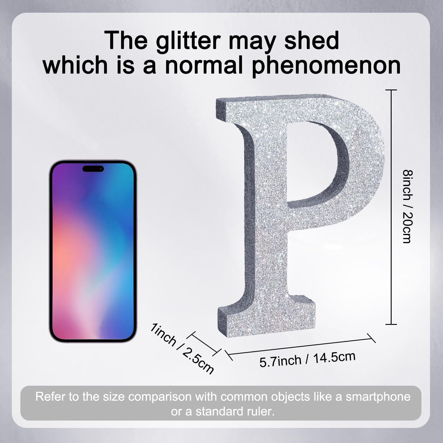 - ITEM INFORMATION AND SIZE: 1 Pcs * P Silver Glitter Letter Ornament. Size: 8 * 5.8 * 1 Inches (20*15*2.5 CM). Before purchasing, Please check the size carefully to make sure it meets your needs