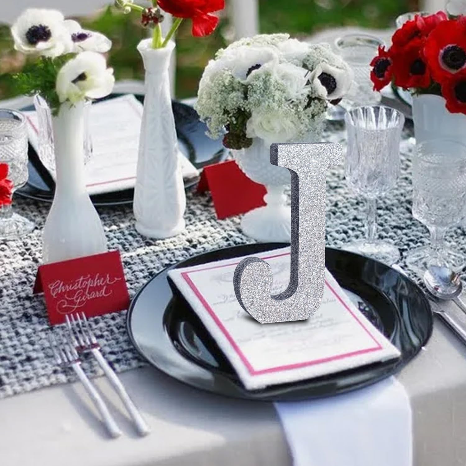 TONIFUL 8 Inch Silver Glitter Letter J Table Centerpiece A-Z Silver Birthday Party Decorations,Silver Alphabet J for Birthday,Chrismas,Graduation,Bridal Shower,Wedding,Anniversary Party Supplies