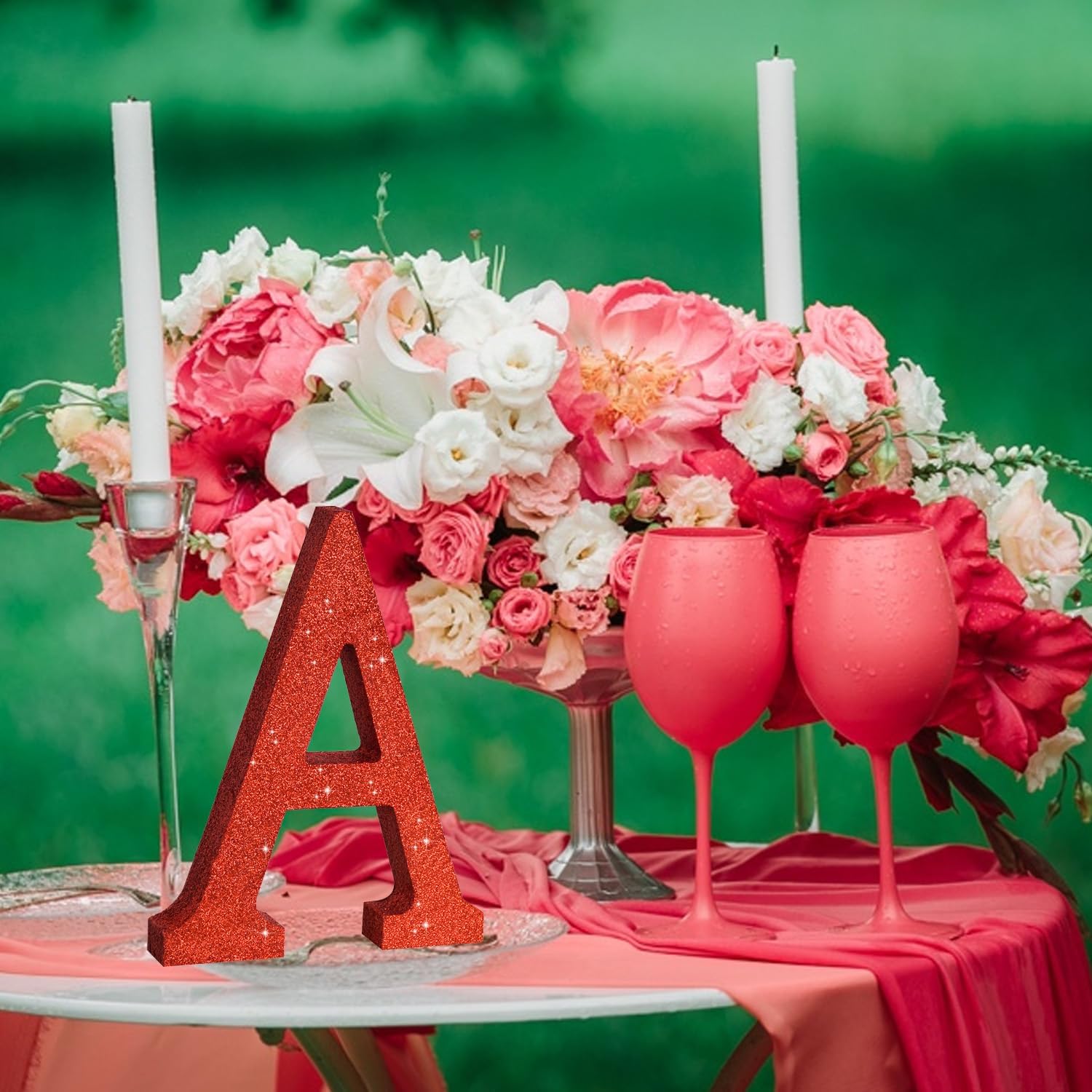 TONIFUL 8 Inch Red Glitter Letter A Table Centerpiece A-Z Red Birthday Party Decorations,Red Alphabet A for Birthday,Chrismas,Graduation,Bridal Shower,Wedding,Anniversary Party Supplies
