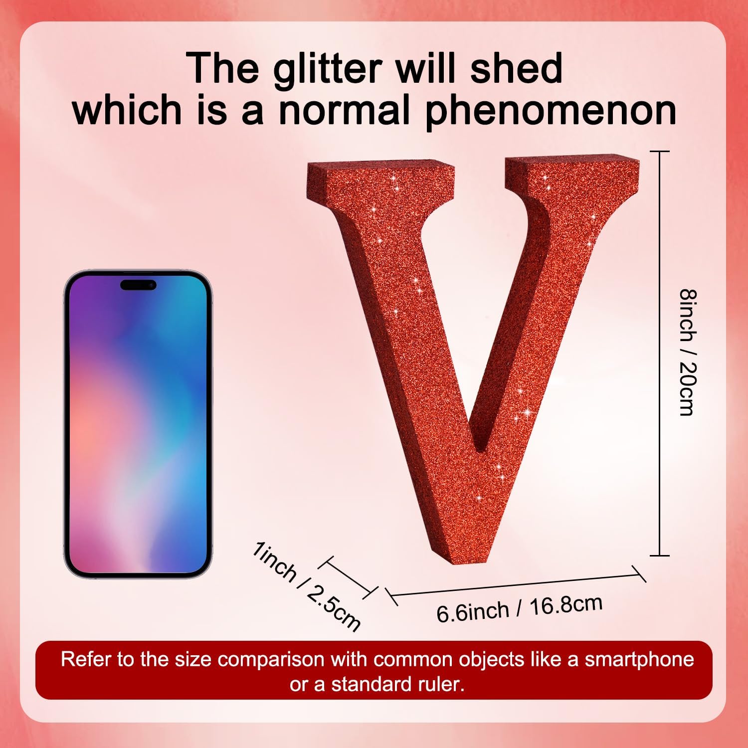 - ITEM INFORMATION AND SIZE: 1 Pcs * V Red Glitter Letter Ornament. Size: 8 * 5.8 * 1 Inches (20*15*2.5 CM). Before purchasing, Please check the size carefully to make sure it meets your needs