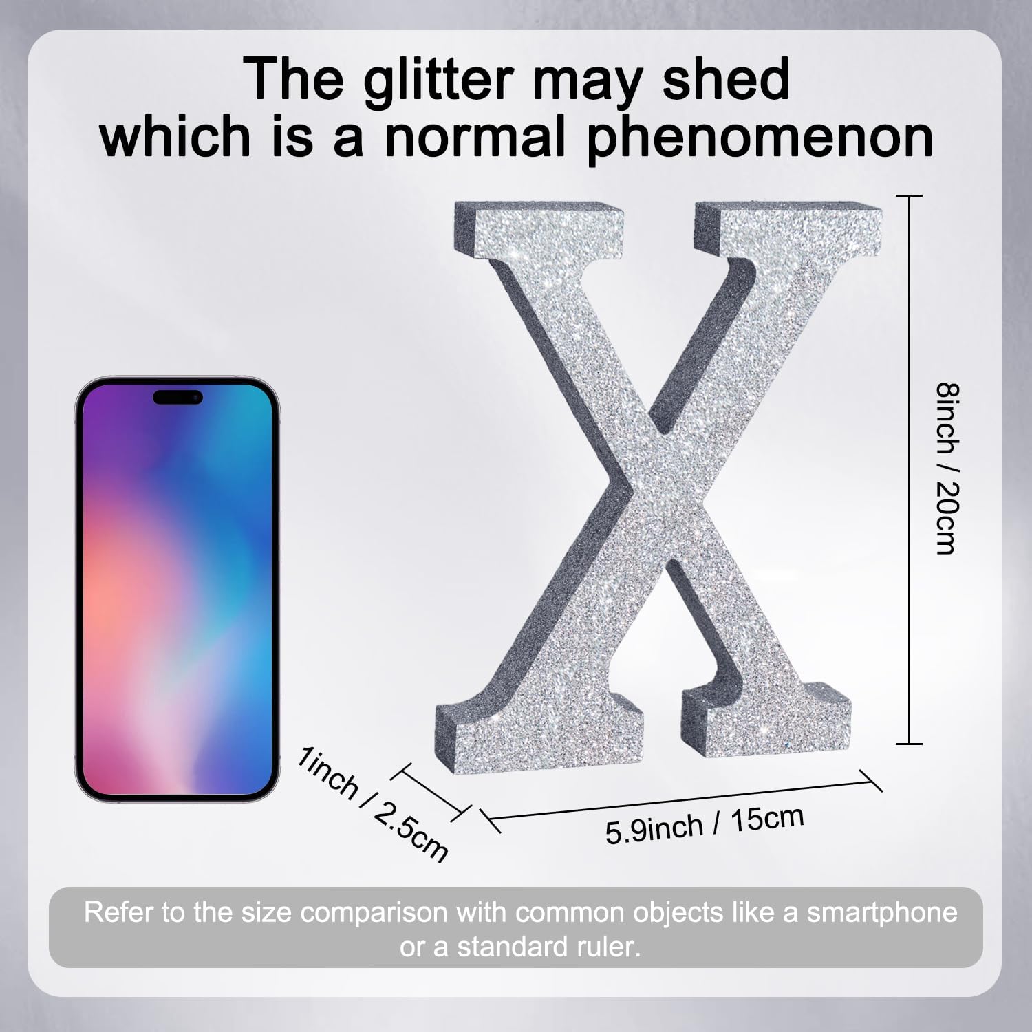 - ITEM INFORMATION AND SIZE: 1 Pcs * X Silver Glitter Letter Ornament. Size: 8 * 5.8 * 1 Inches (20*15*2.5 CM). Before purchasing, Please check the size carefully to make sure it meets your needs