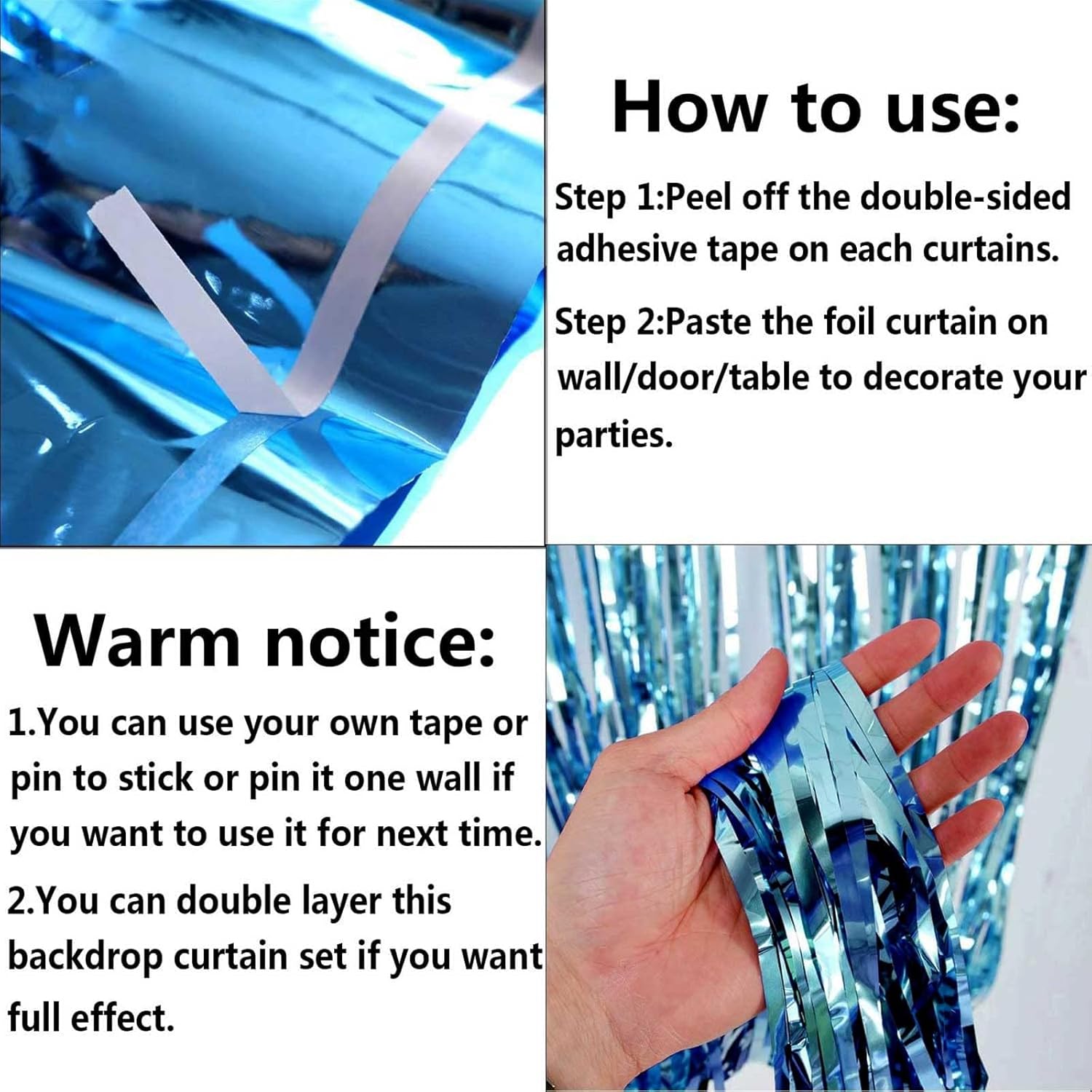 4 Pack Light Blue Foil Fringe Curtain Backdrop, 3.28Ft x 8.2Ft Metallic Tinsel Foil Fringe Streamer Curtains for Photo Booth Props, Birthday, Wedding, Christmas Decoration Party Supplies New