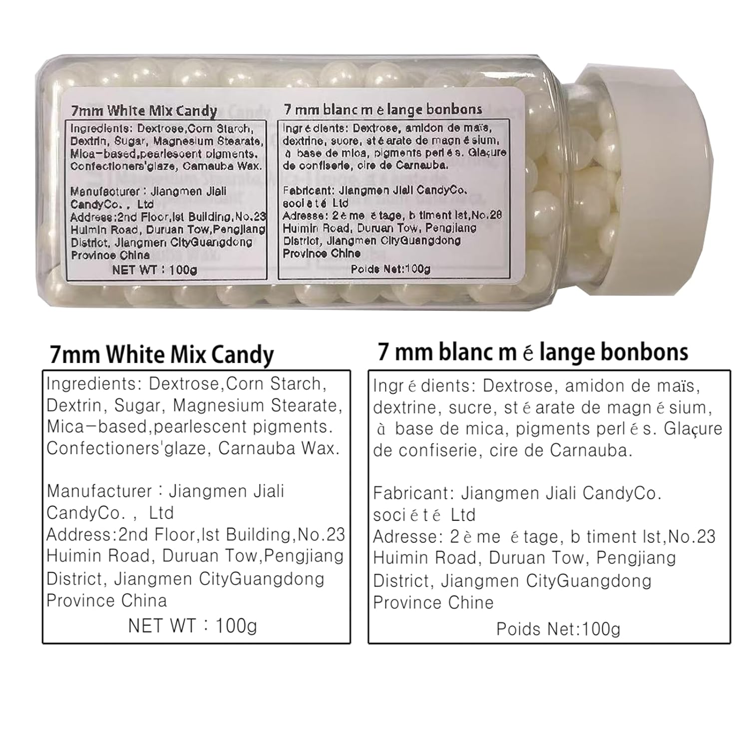 - 7mm White Pearl Sprinkles: Each bottle weighs 3.52 oz (100 g)