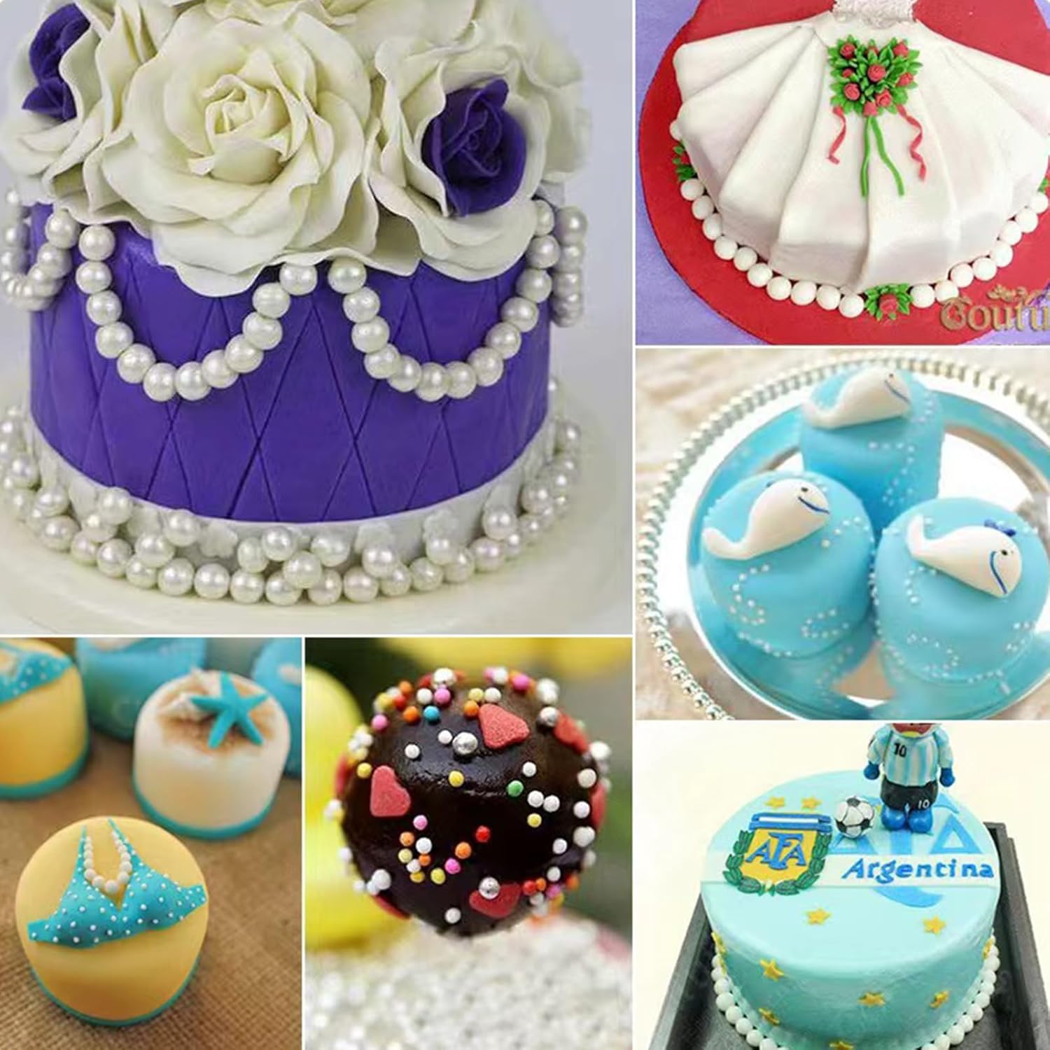 Sentovac 4mm White Pearl Sprinkles Edible Cake Decorating Sugar Candy Cookie Cake Cupcake Topper Ice Cream Baking Decorations Halloween Christmas Valentines Wedding Supplies
