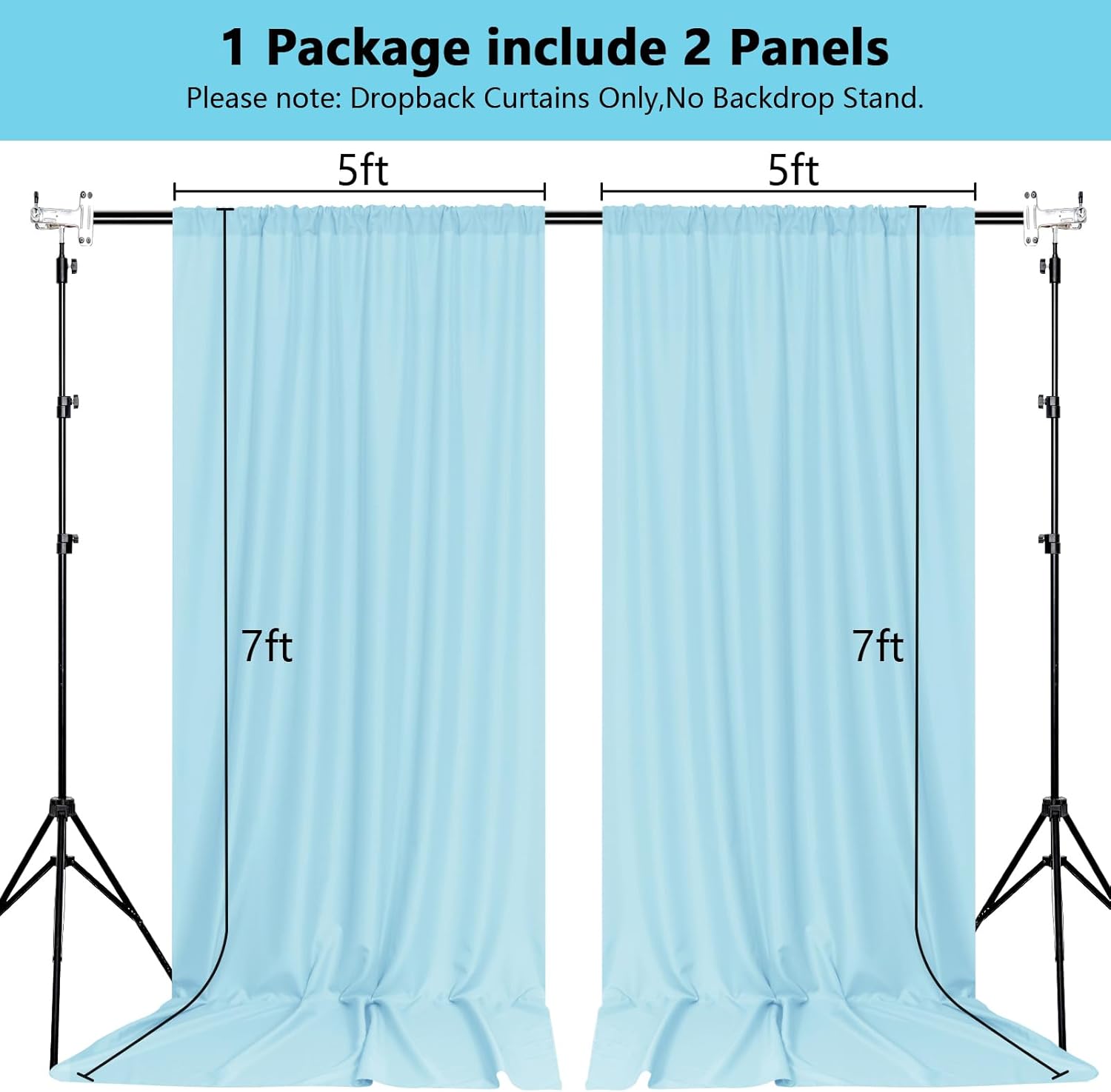 - DIMENSIONS: Each order is for 2 (two) polyester curtains. Each curtain measures 5 feet wide x 7 feet high. Entire backdrop measures 10 feet wide x 7 feet high.Each curtain panel comes with 4 inch rod pocket on top, fit up to any standard rods. (Please note: Dropback Curtains Only,No Backdrop Stand.)