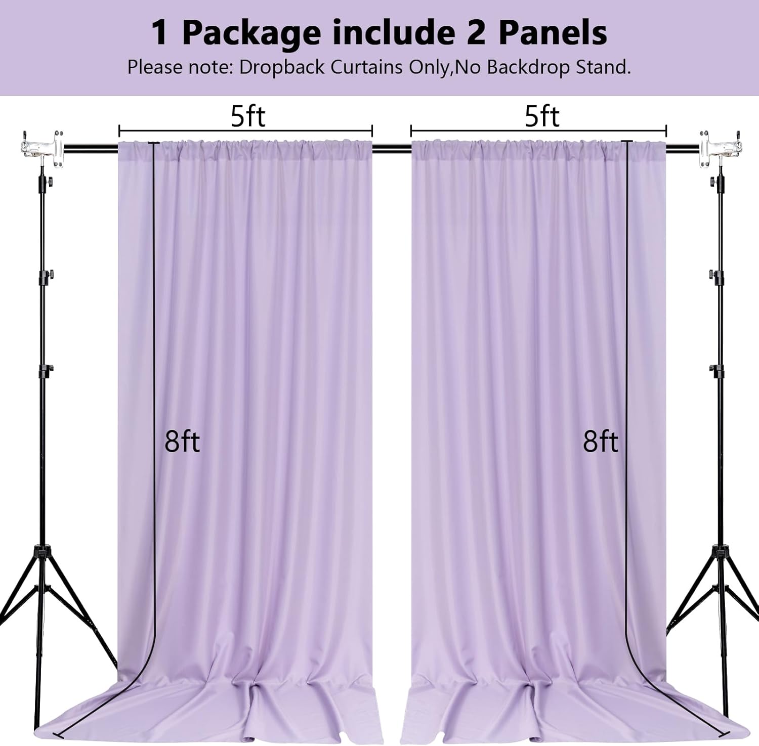 MEETSKY 10ft x 8ft Light Purple Backdrop Curtain for Parties Wedding Photo Background Rod Pocket Curtains Backdrop Drapes Home Decoration for Birthday Party Baby Shower Photoshoot, 5ft x 8ft, 2 Panels