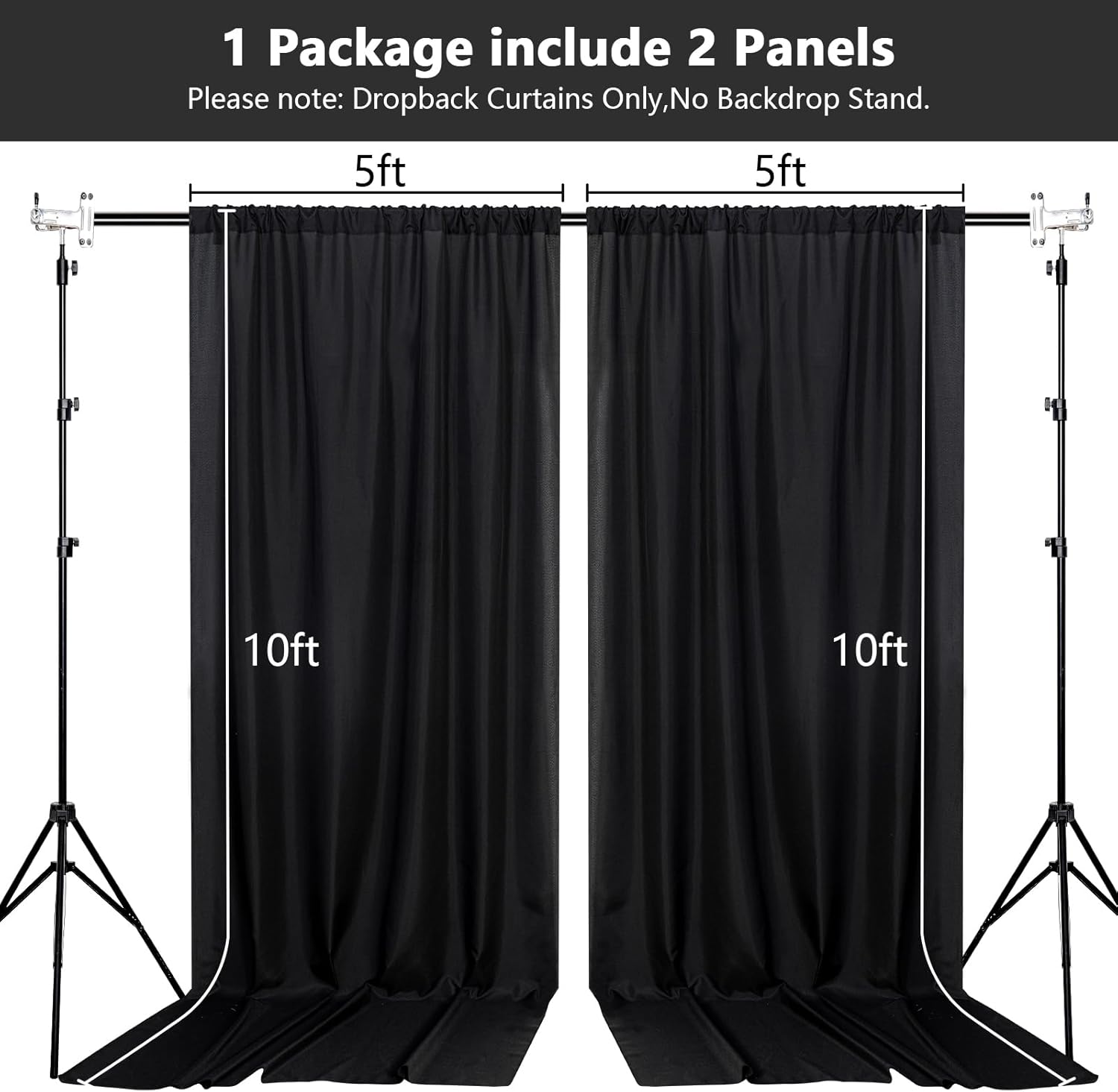 - DIMENSIONS: Each order is for 2 (two) polyester curtains. Each curtain measures 5 feet wide x 10 feet high. Entire backdrop measures 10 feet wide x 10 feet high.Each curtain panel comes with 4 inch rod pocket on top, fit up to any standard rods. (Please note: Dropback Curtains Only,No Backdrop Stand.)