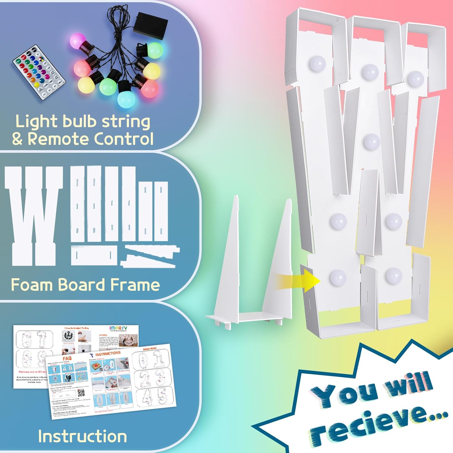 Imprsv 3FT Colorful Marquee Light Up Letters W, 18 Color Light Up Alphabet Sign with Remote, Baby Shower, Birthday Engagement Wedding Party Decor