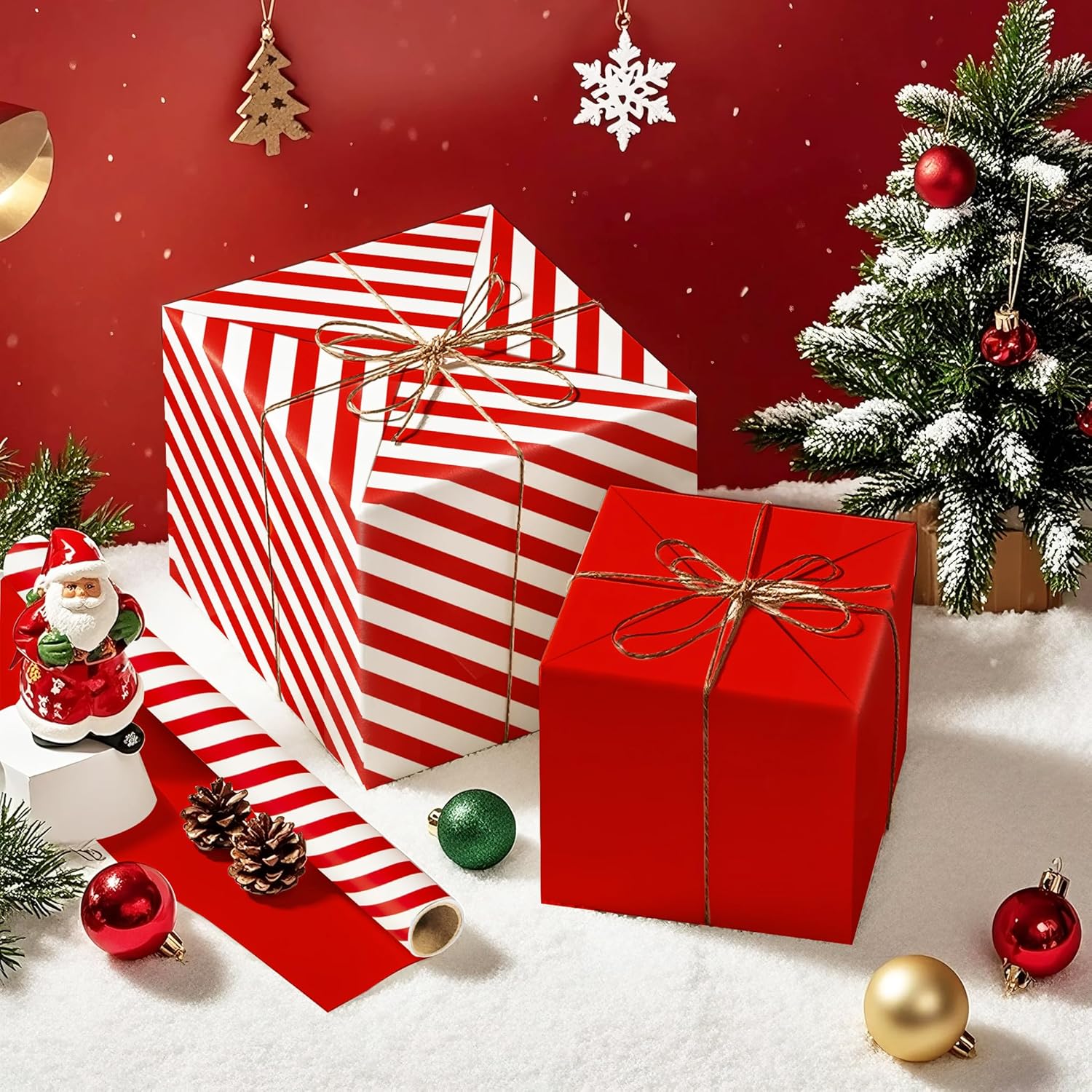 - REVERSIBLE: A solid red side and a red/white stripe side. Two different classic designs make beautiful and varied gift presentations easy.