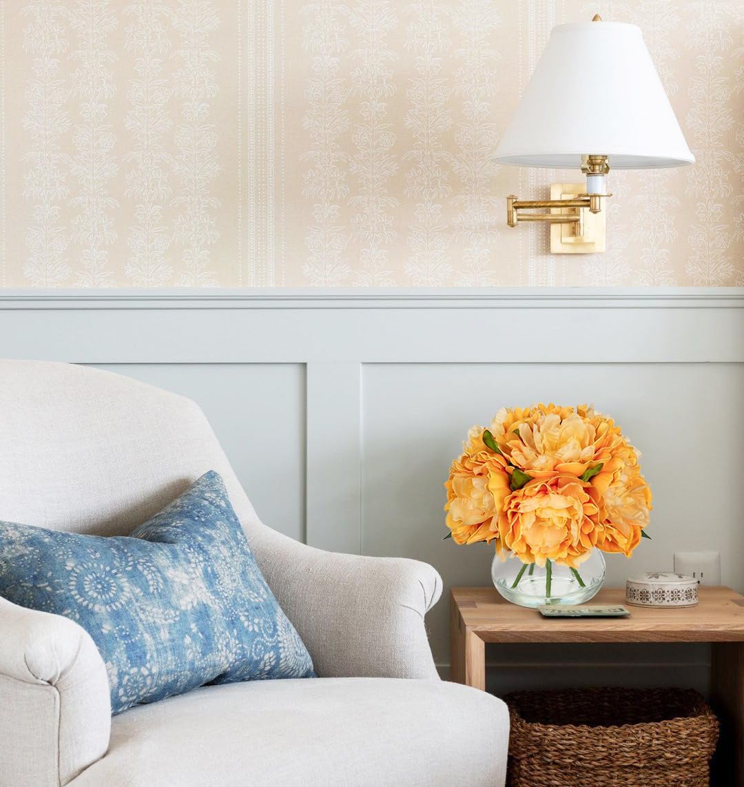 - 💐【Realistic & Elegant】Peonies fall flowers artificial for decoration with glass vase suits look so beautiful, unique craft design, brings different visual enjoyment to your home, create a romantic atmosphere, make you happy every day. Faux water on the vase adds to the pulchritude and realism. More realistic because of the details!
