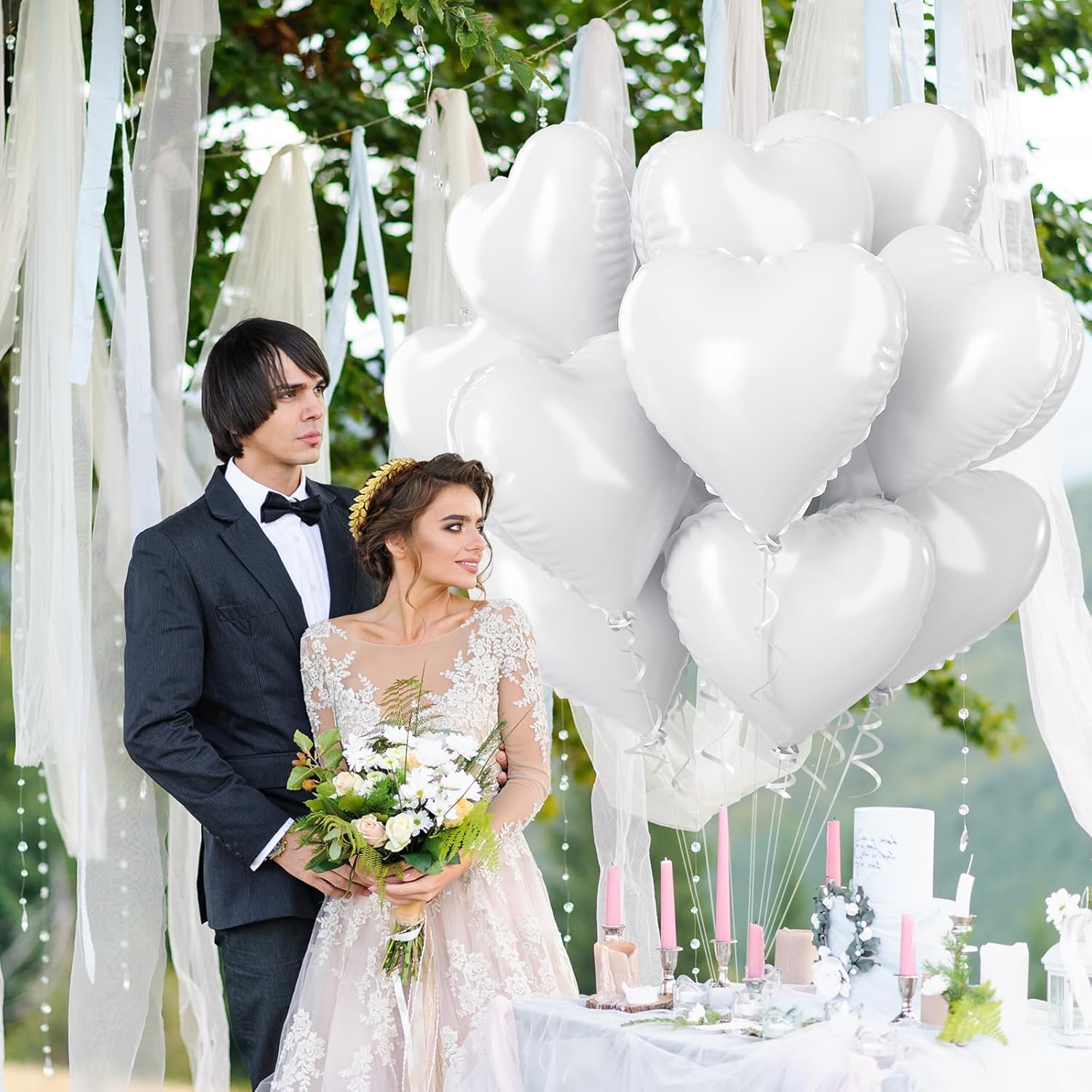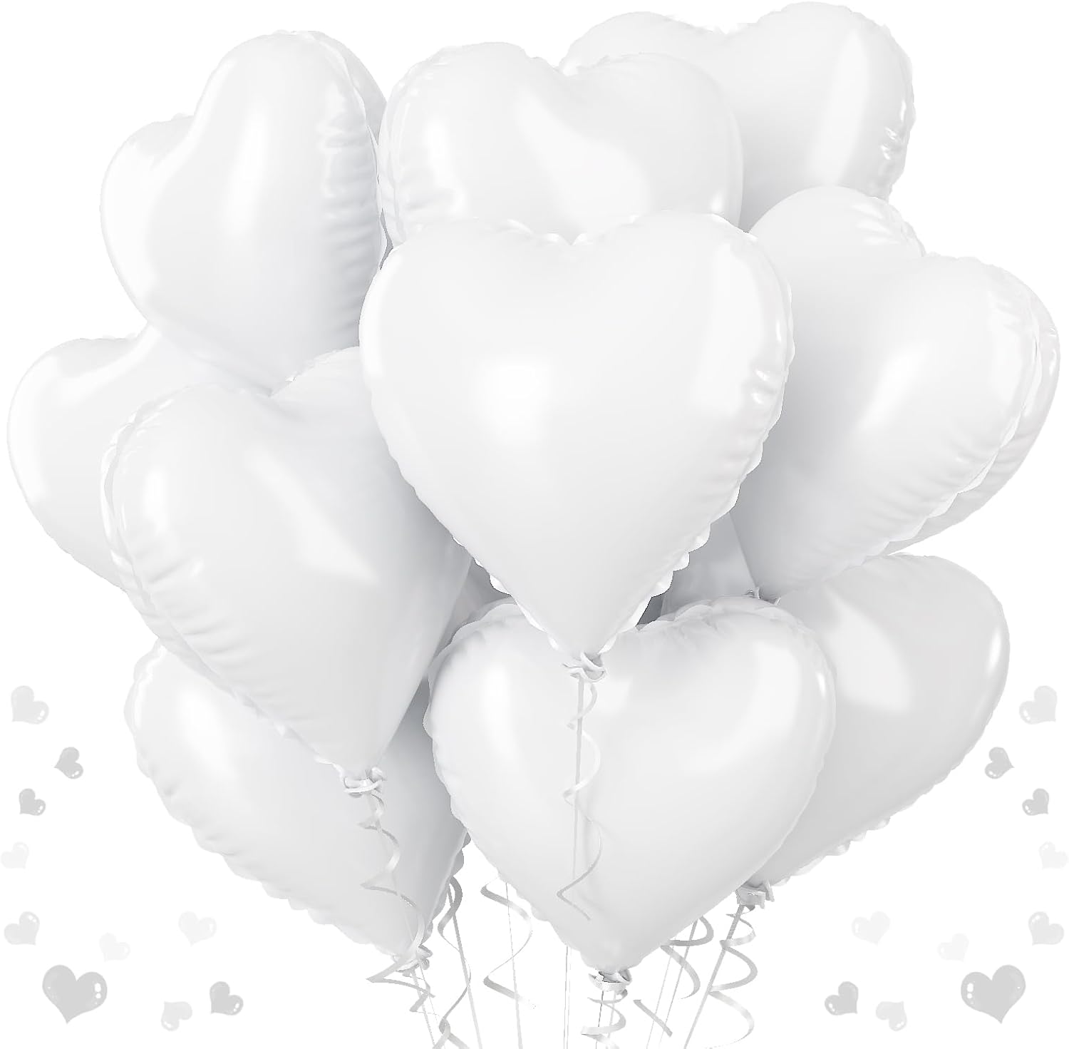 - White Heart Balloons: There are 12pcs 18 inch white heart foil balloons and 1pc ribbons.
