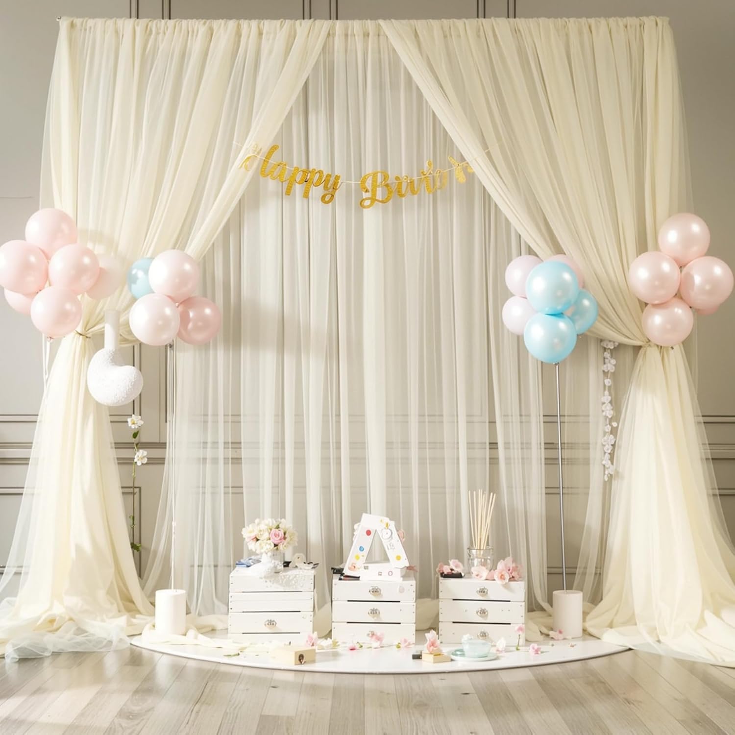 Ivory Tulle Backdrop Curtain for Wedding Parties 10ft x 10ft Sheer Backdrop Curtains for Bridal Shower Birthday Baby Shower Photo Shoot Background Decorations 2 Panels 5ft x 10ft