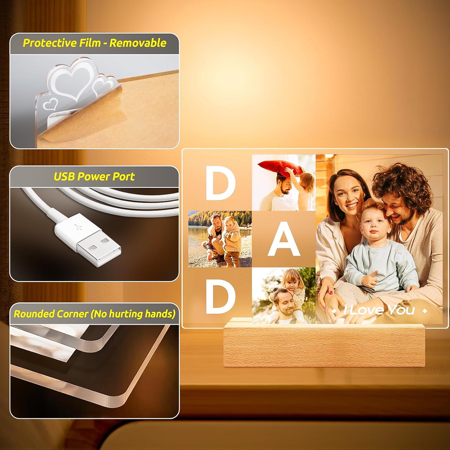 Personalized DAD Picture Frames, Customized Photo Frame with Night Light, Custom Picture Frames, Best Dad Ever Gifts, Personalized Christmas Birthday Gifts for Dad from Daughter Son Wife
