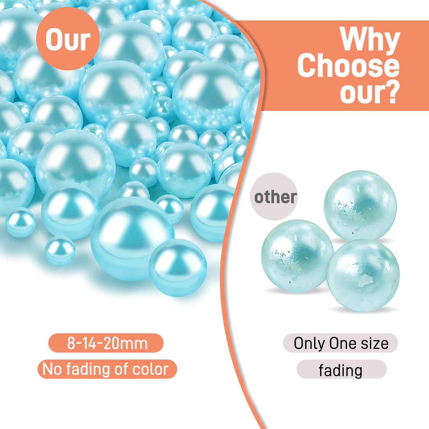 120 PCS 8/14/20mm No Hole Polish Pearl Beads for Centerpiece, Lake Blue Beads Decorative Vase Fillers, Plastics Pearls for Vases, Table Scatters, Wedding Party Decor