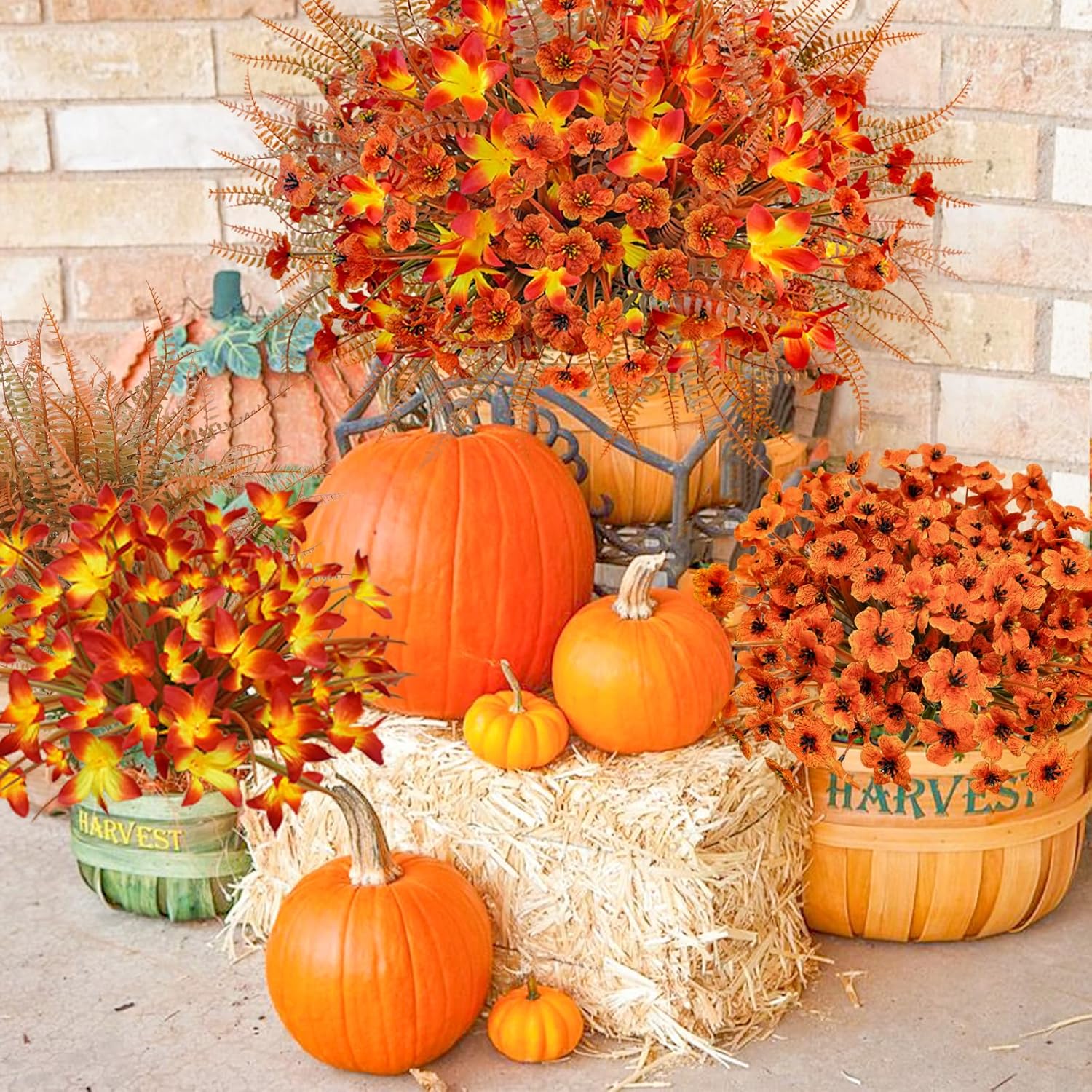 64Pcs Fall Flowers Outdoor Faux Fall Flowers Plants UV Resistant Autumn Artificial Plastic Flowers Greenery Fall Decoration for Outside Home Porch Patio Thanksgiving Decoration